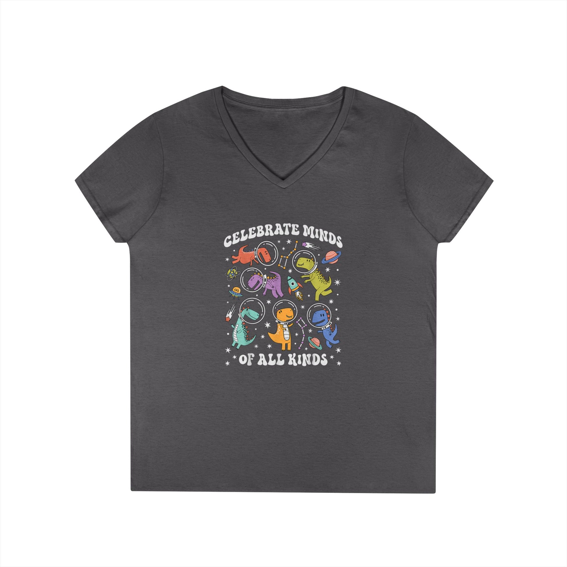 Soft, breathable cotton meets playful, colorful design in this v-neck tee made for people who celebrate kindness and diversity. The front artwork shows a joyful parade of whimsical characters and the message “Celebrate Blinds of All Kinds,” giving the shirt a warm, inclusive vibe that sparks smiles and conversation. Lightweight but structured, the semi-fitted cut drapes easily over everyday outfits — wear it to community gatherings, casual meetups, or quiet mornings with coffee. It sits naturally with denim or layered under a cardigan, bringing a gentle splash of color and personality to daily life.