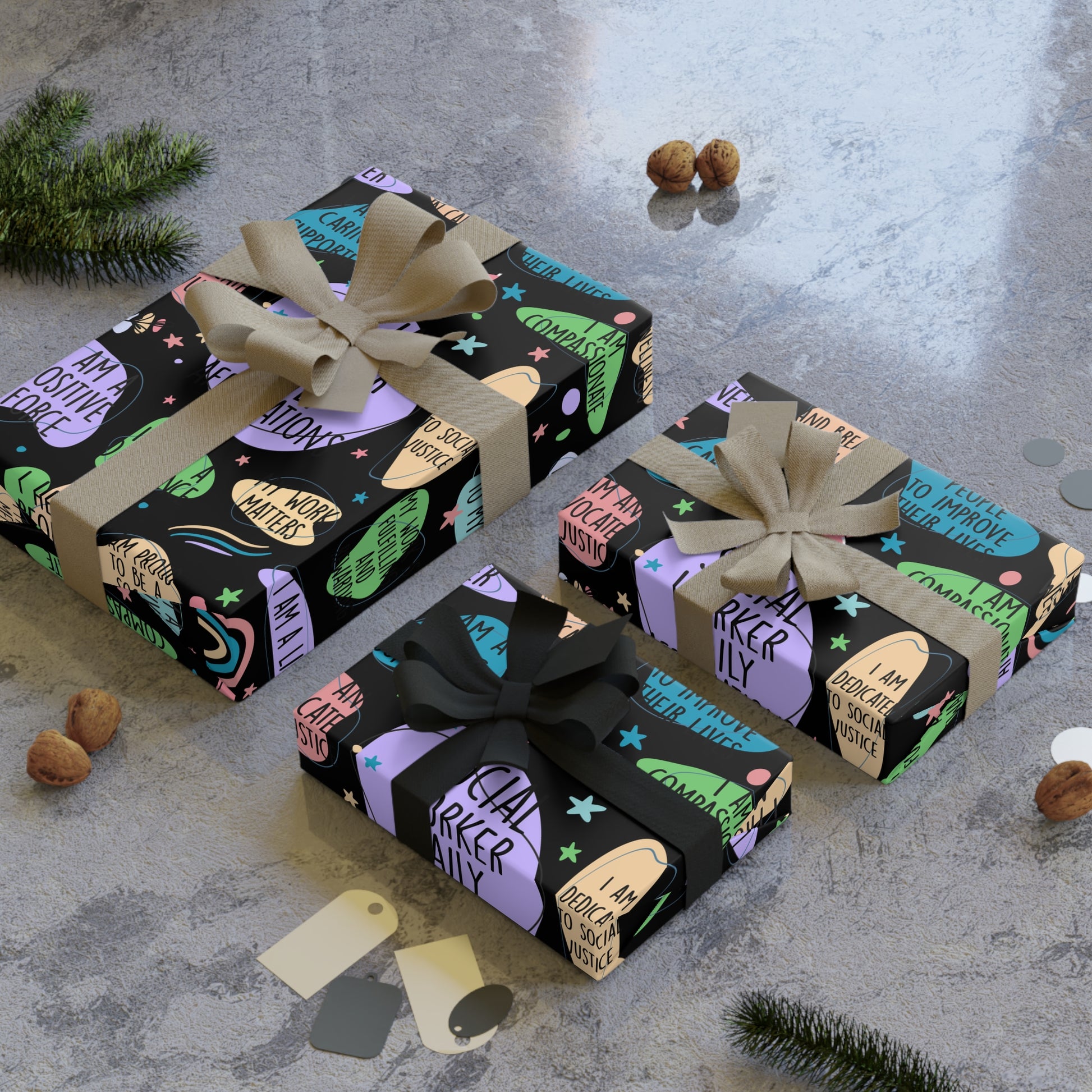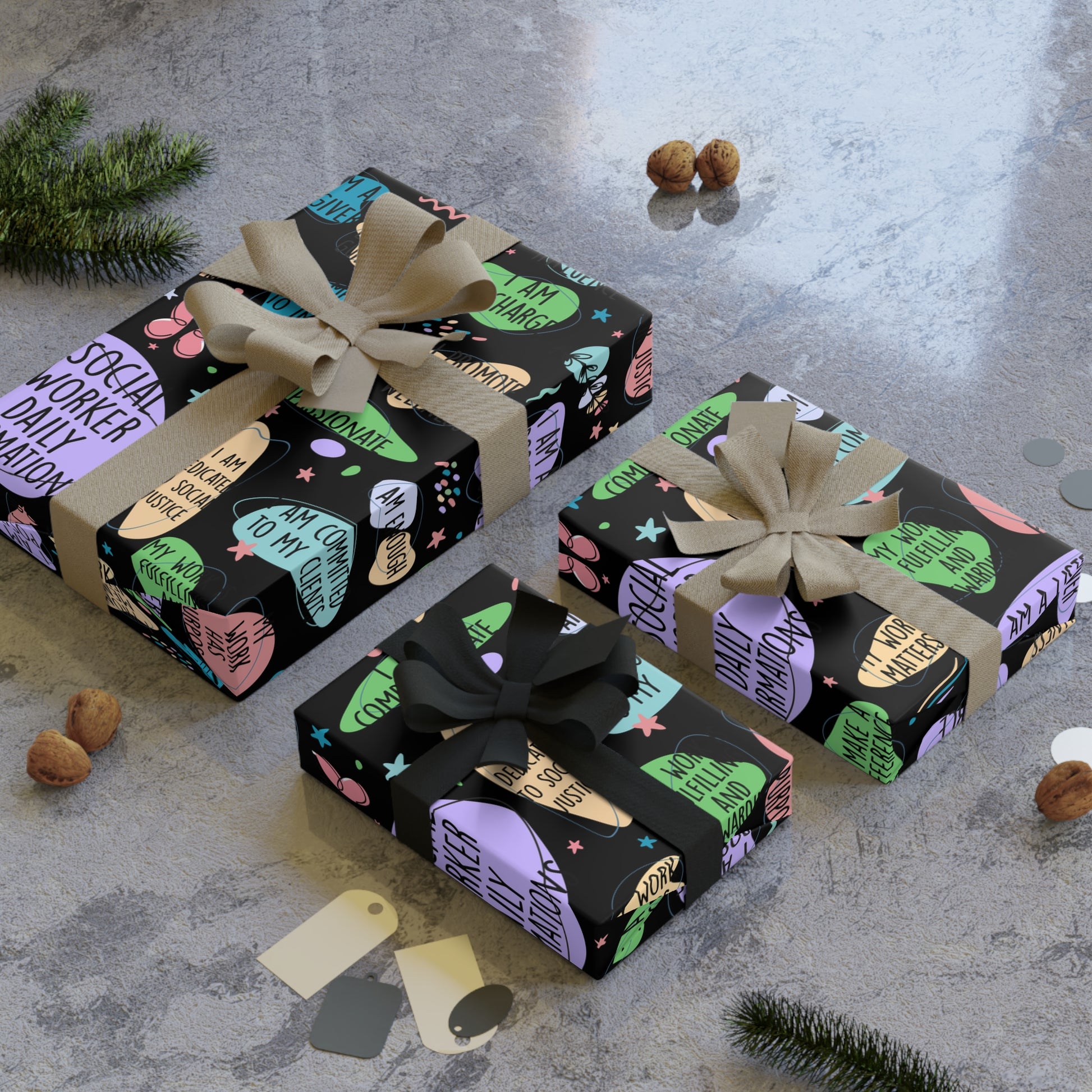 Christmas & Birthday Wrapping Paper Roll – Social Worker Appreciation Pattern (’Social Worker Daily Affirmation’)