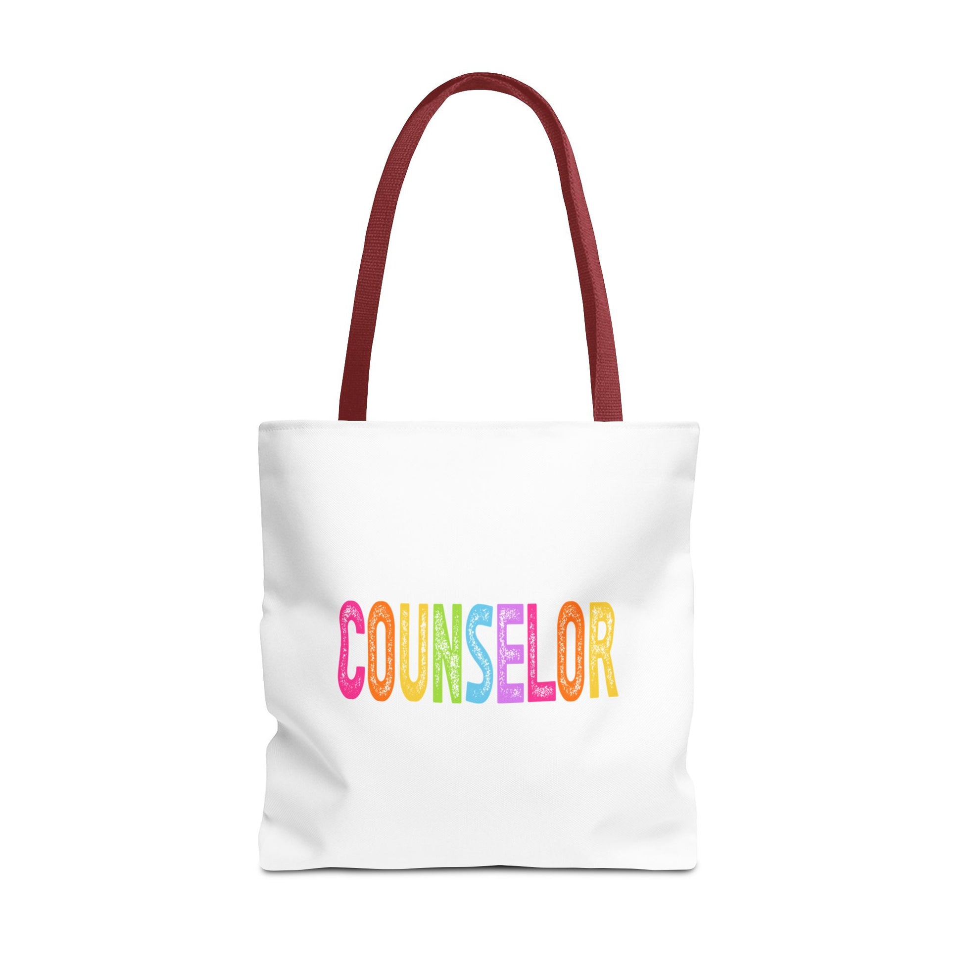 Bright, sturdy tote that carries more than supplies — it carries intention. Lightweight polyester keeps the bag shape while the laminated interior stands up to day-to-day spills and rushes. Colorful, hand-drawn graphics — a cheerful “COUNSELOR” wordmark and a joyful bucket overflowing with hearts and stars — bring warmth to school mornings, campus days, or community events. Boxed corners give extra room for lesson plans, snacks, or a planner. Reinforced handles and clean inner stitching mean this tote holds up through busy weeks while staying easy to care for.