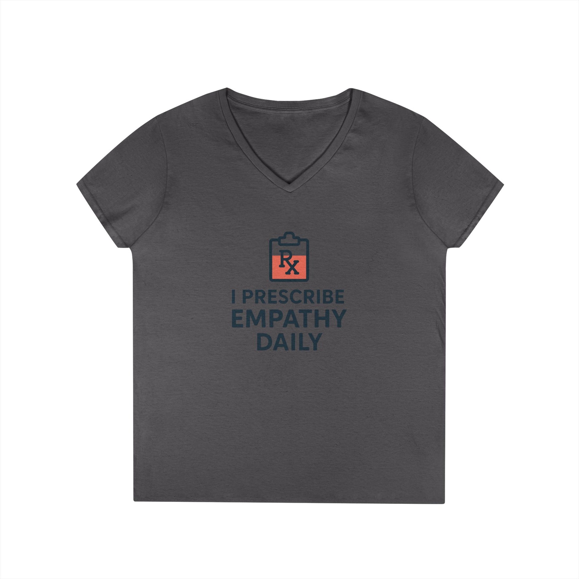 Ladies' V-Neck T-Shirt — "I Prescribe Empathy Daily" Graphic Tee - Medical Social Work
