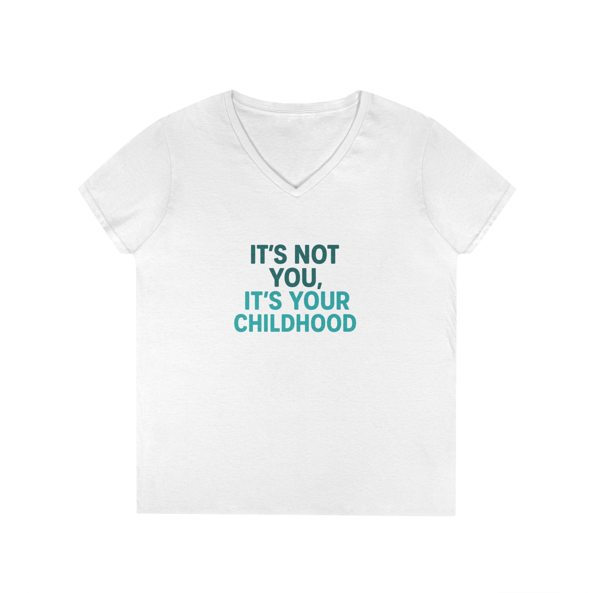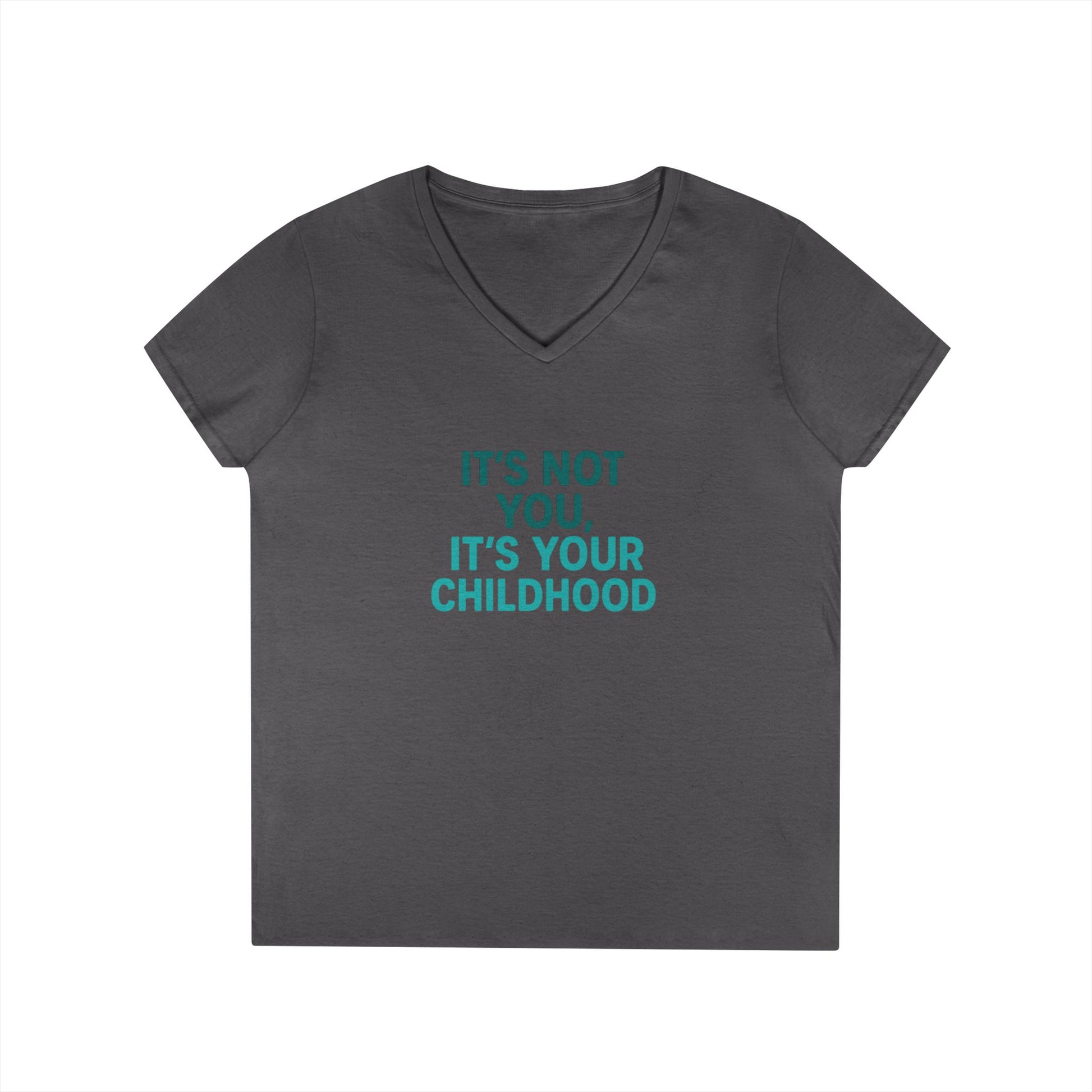 Ladies' V-Neck T-Shirt — "It's Not You, It's Your Childhood" Funny Therapeutic Quote Tee (Social Worker/Mental Health)