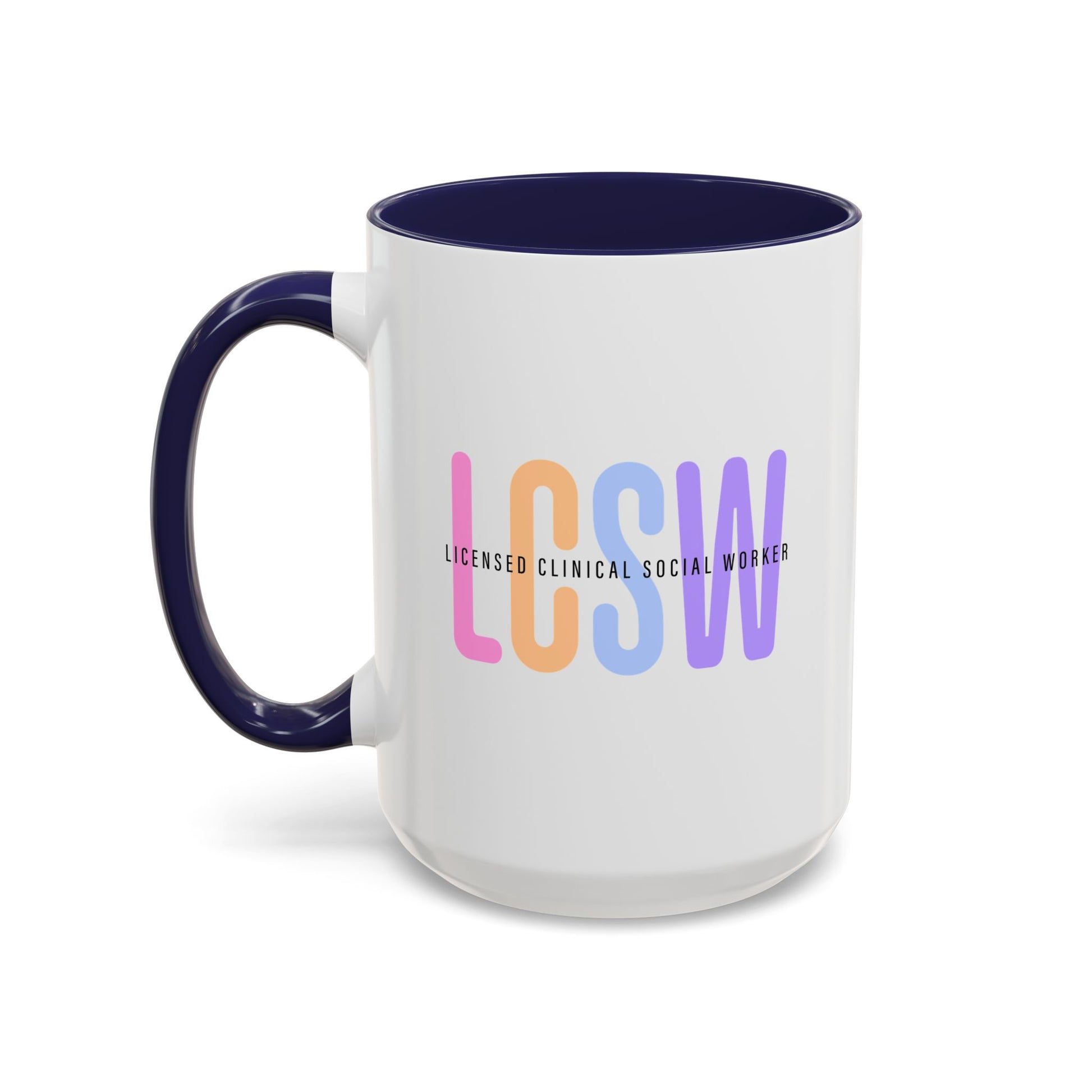 LCSW-Advocate and Caffeinate Accent Coffee Mug — Colorful Social Woker Coffee Cup (15 oz)