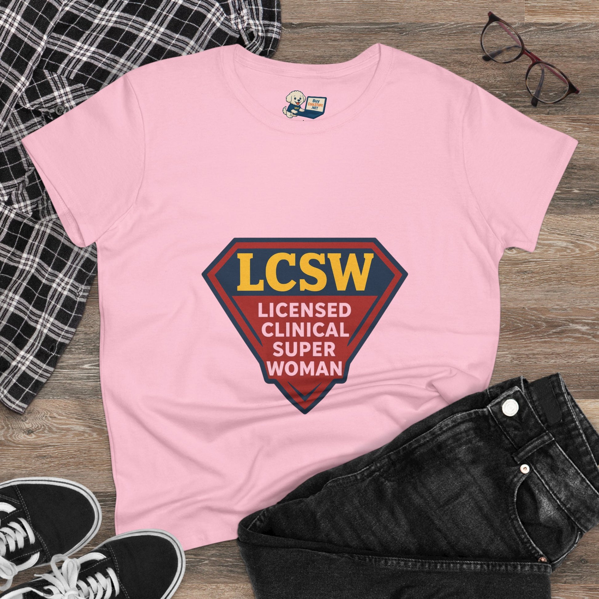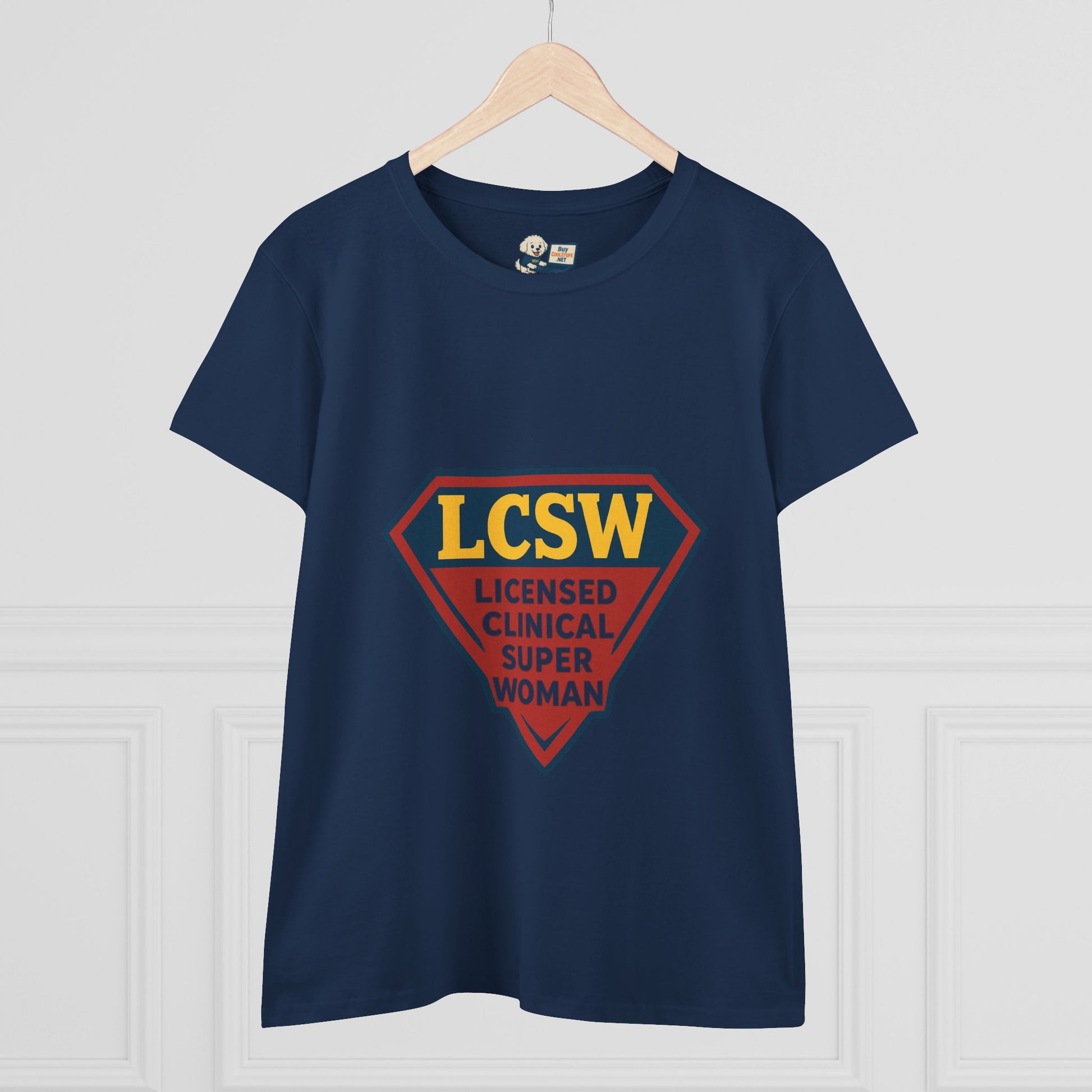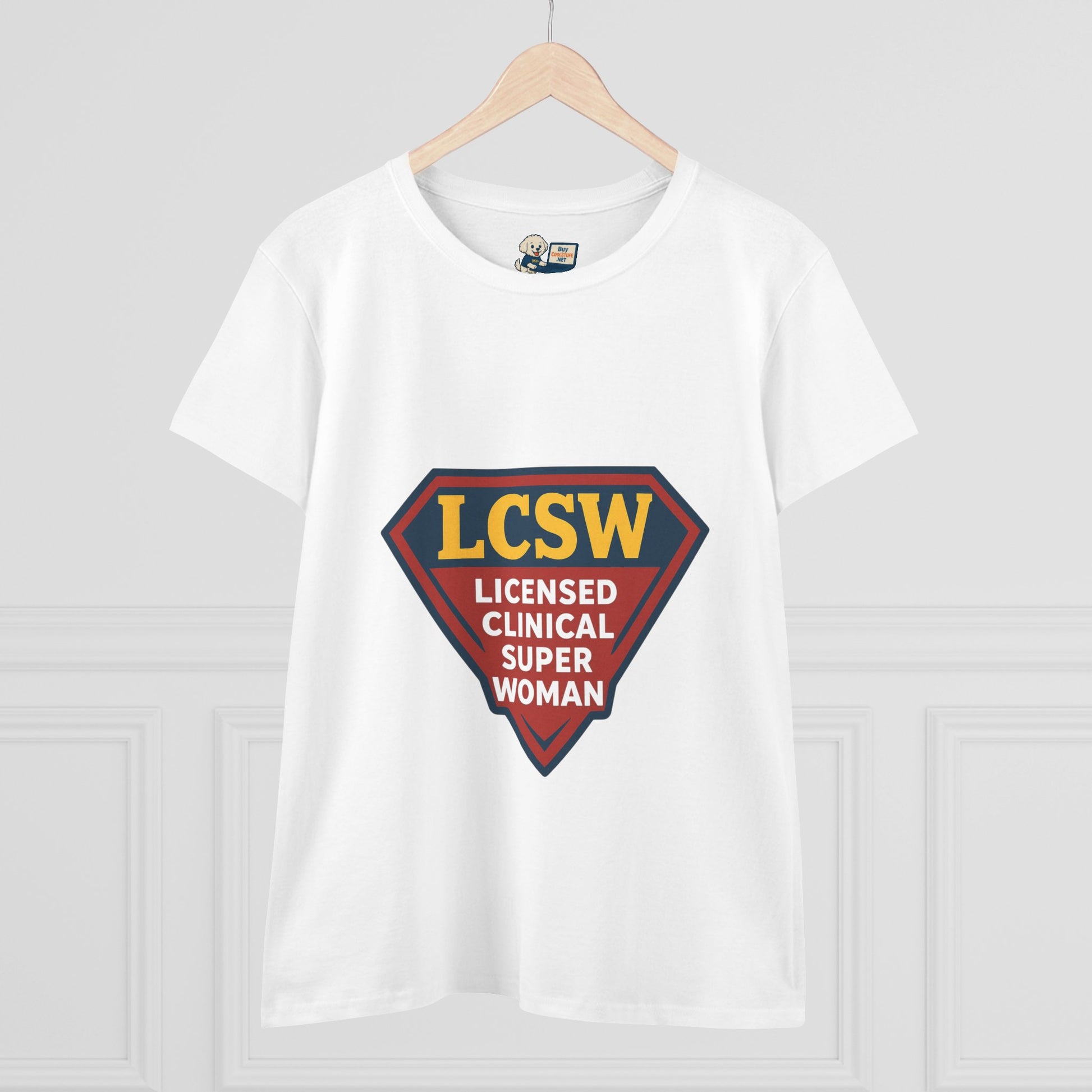 LCSW = Licensed Clinical Super Woman Tee – Saving the World, One Session at a Time Women's Midweight Cotton T-Shirt - Social Work