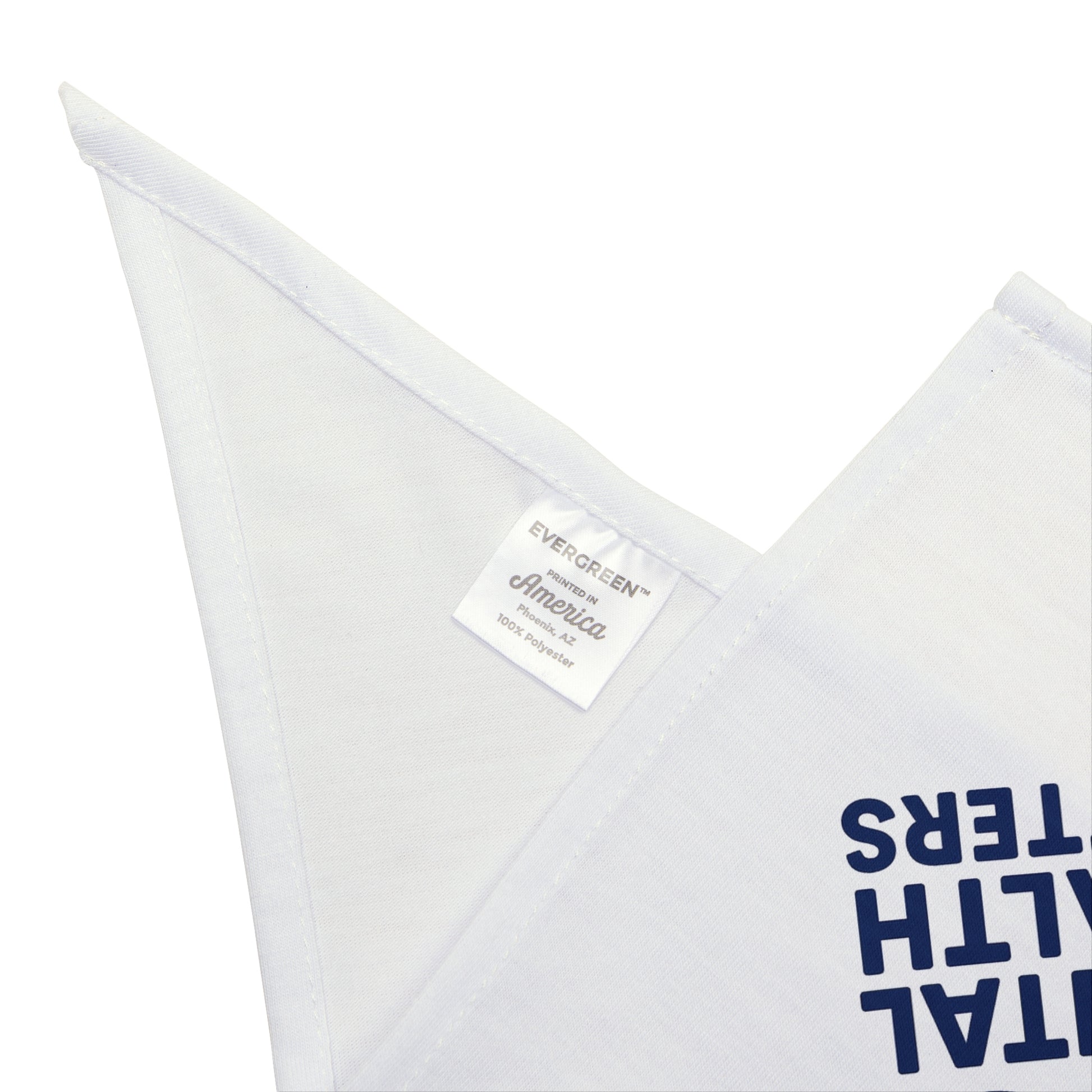 Soft, triangular pet bandana with a clear navy graphic that reads “MENTAL HEALTH MATTERS” beneath a paw-shaped emblem. Lightweight polyester holds its shape and dries quickly, so your dog or cat can wear this print day after day without fuss. The hemmed edges and sewn-in label give a finished look that lasts through walks, photo ops, and cuddle sessions. It lands low at the chest when tied, making the message visible during neighborhood strolls, meet-ups, and awareness events.