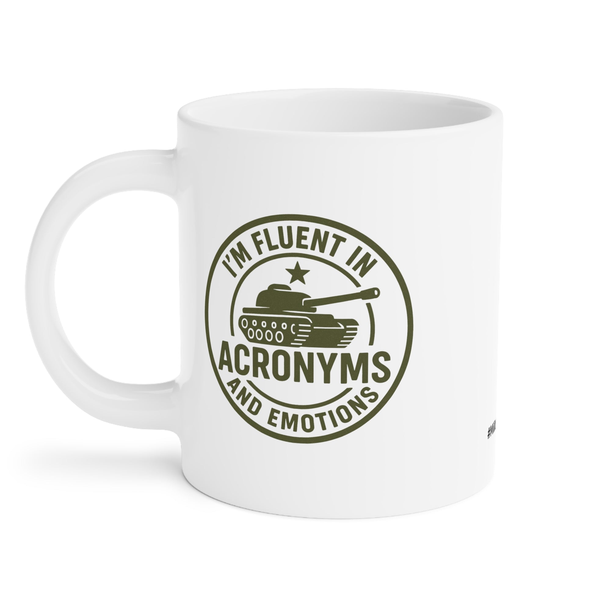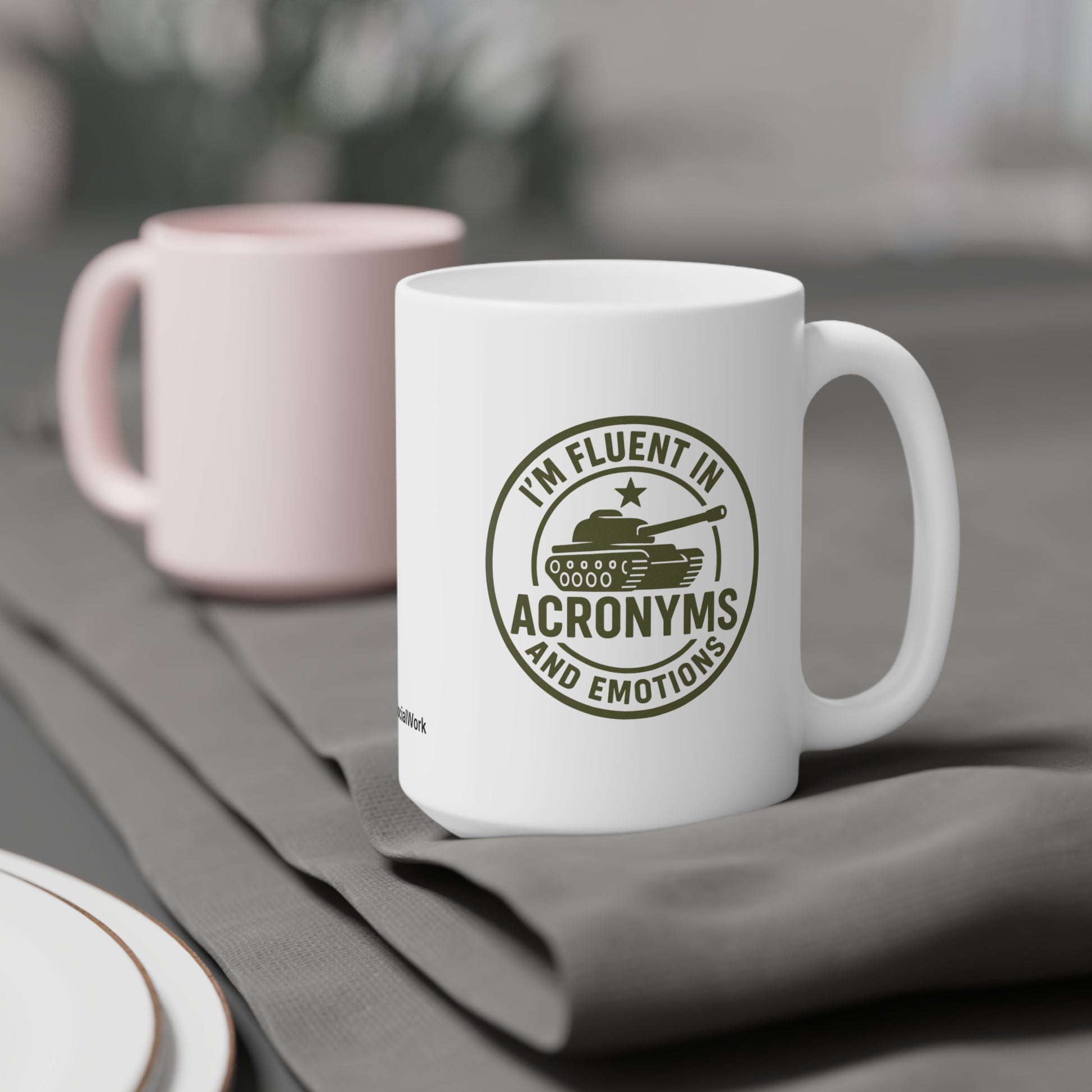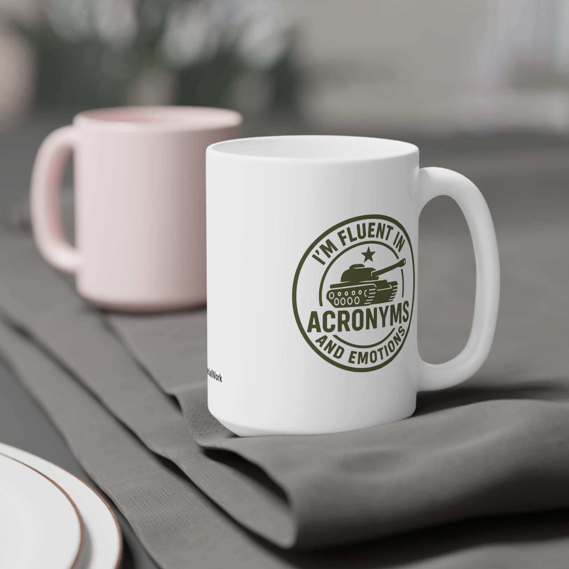 Military Social Work- "Fluent in Acronyms and Emotions" Ceramic Mug - Supportive Coffee/Tea Cup for Self-Care Enthusiasts
