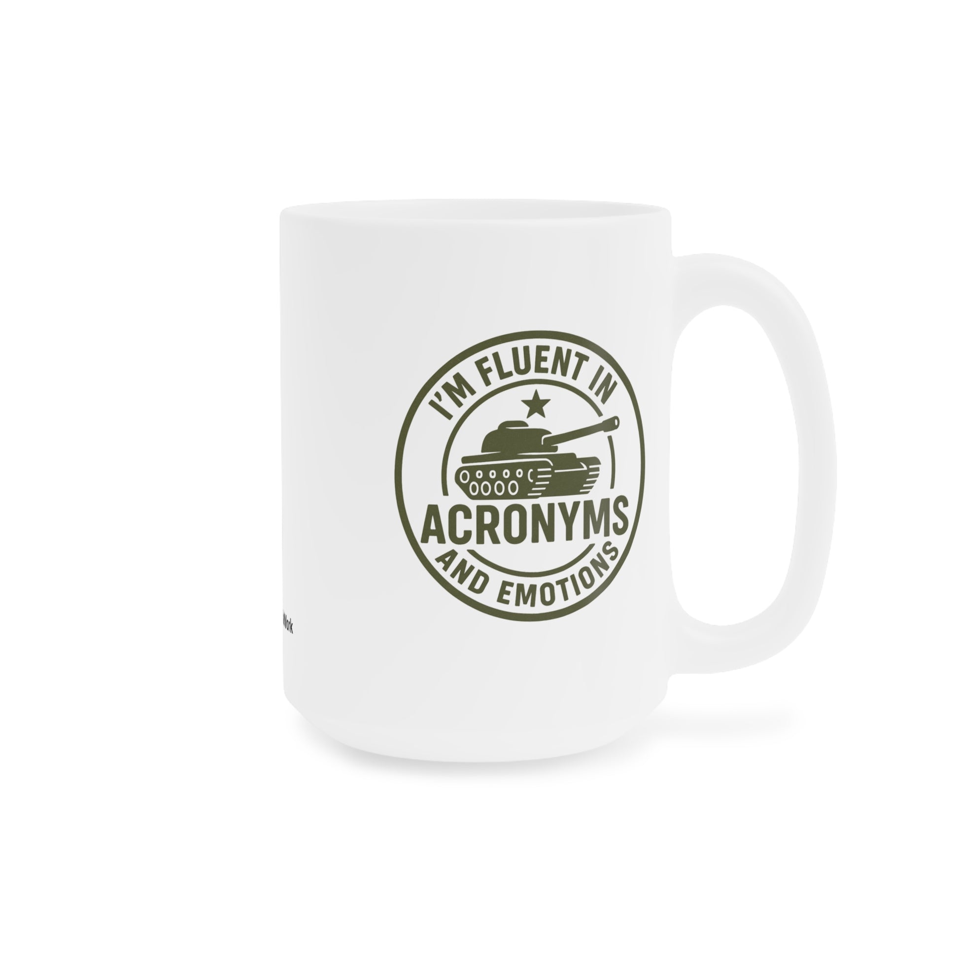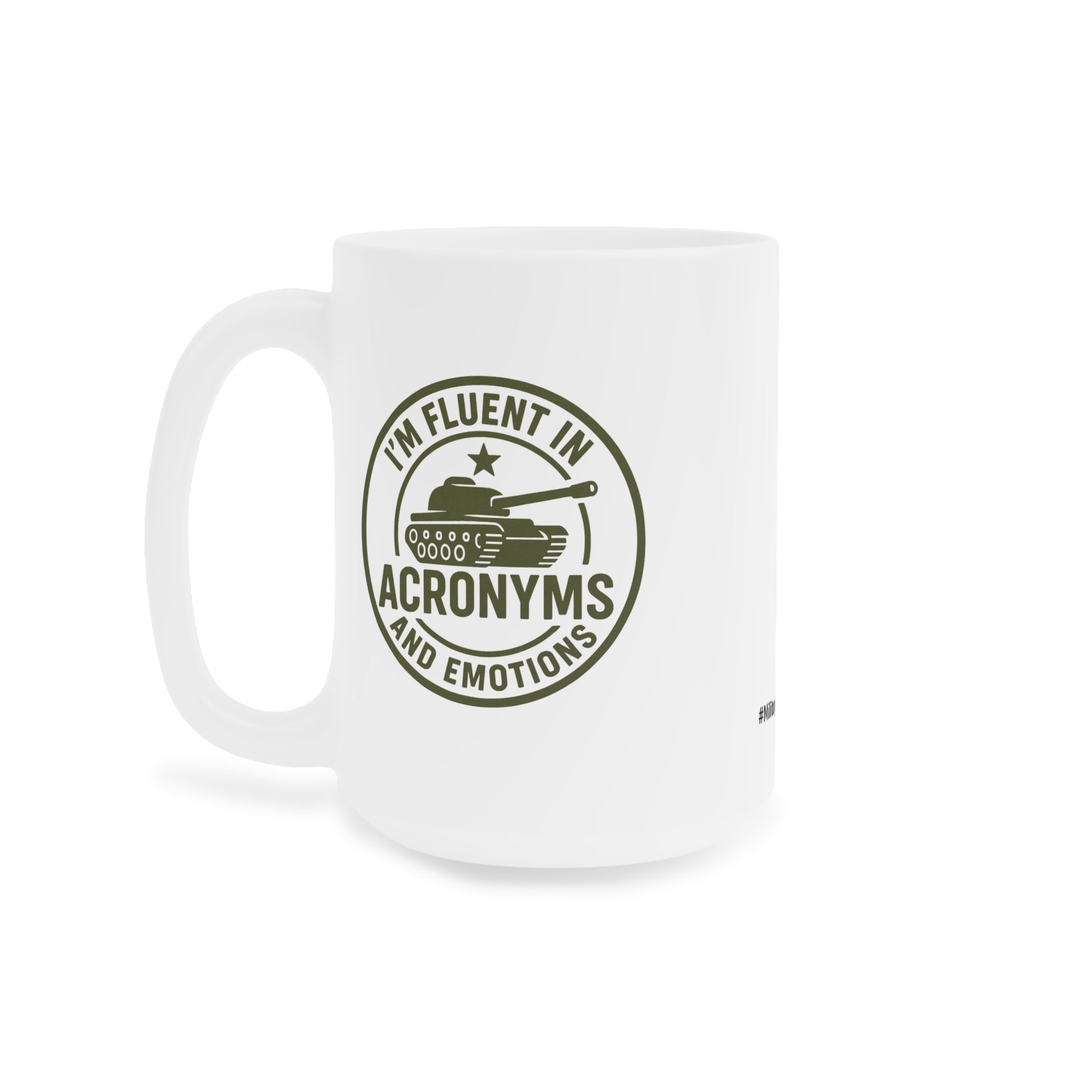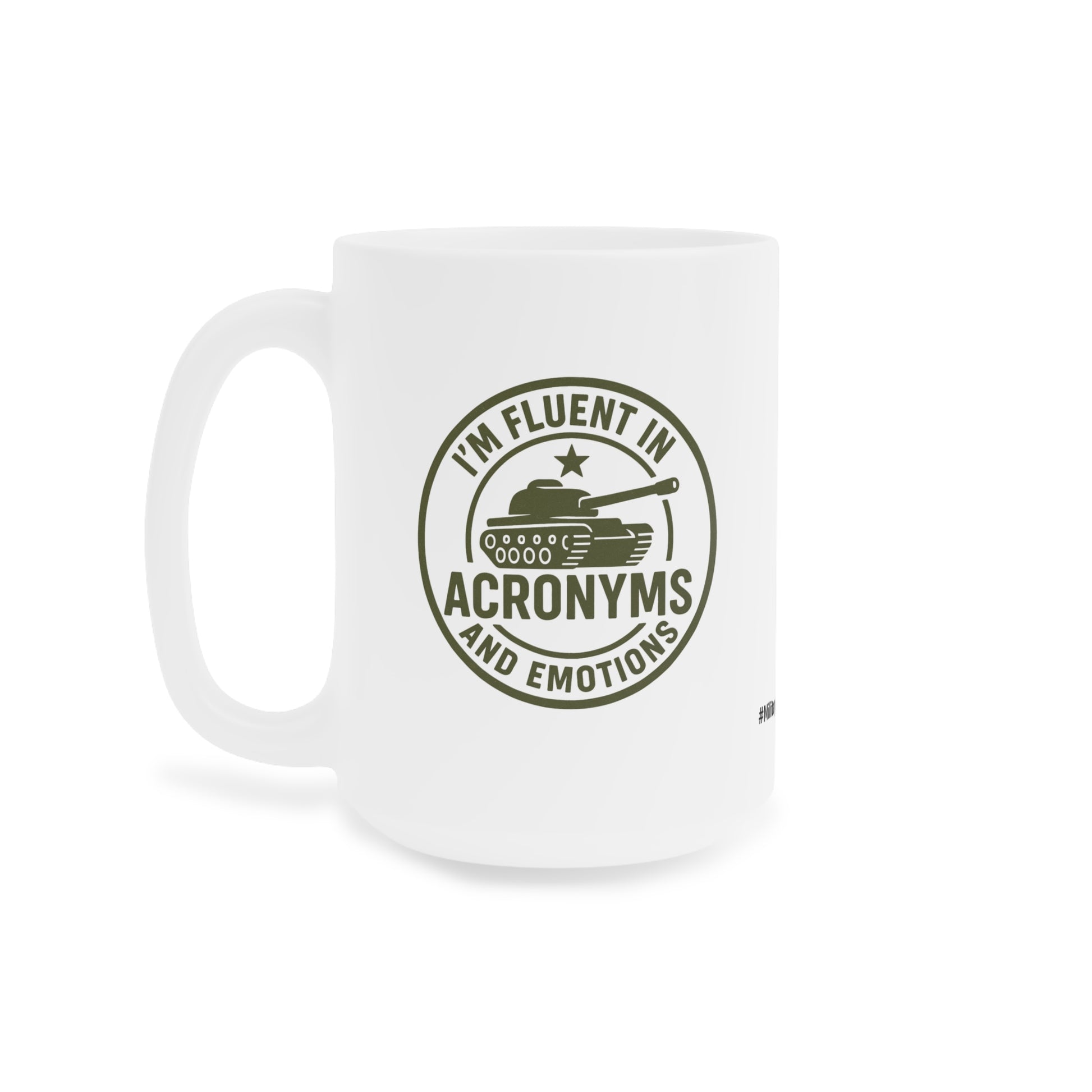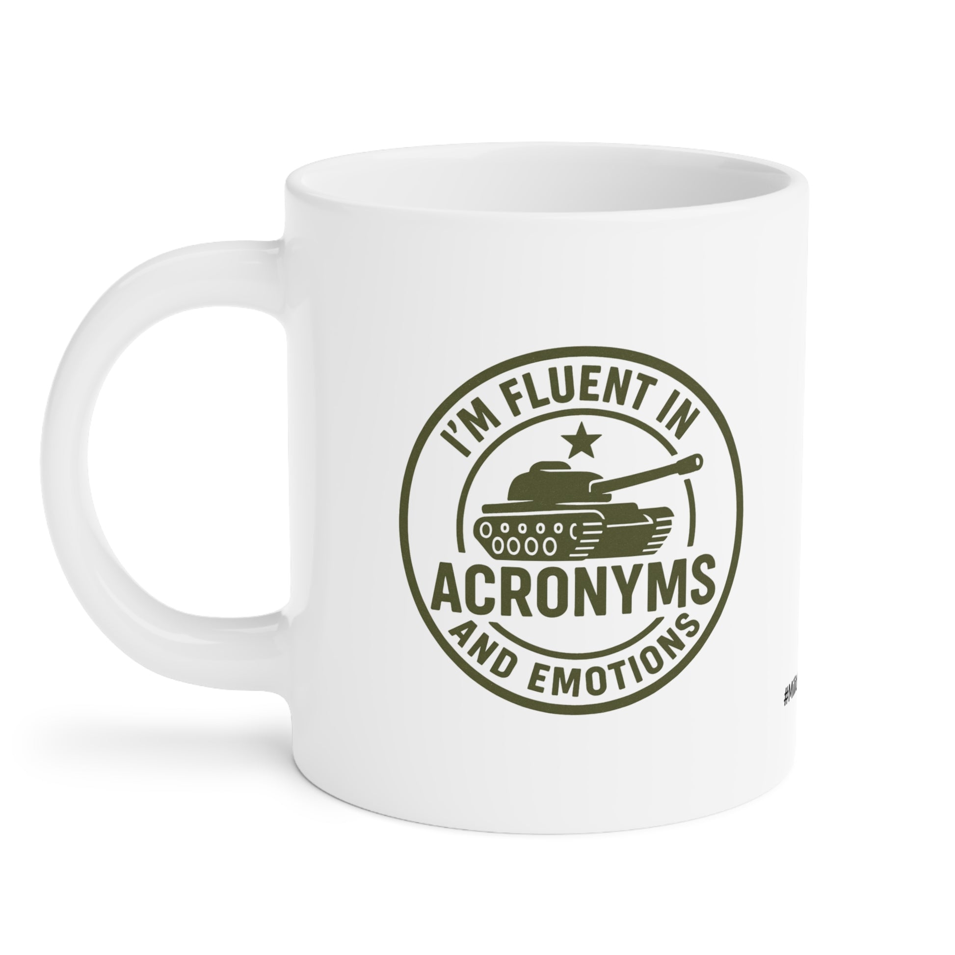 Military Social Work- "Fluent in Acronyms and Emotions" Ceramic Mug - Supportive Coffee/Tea Cup for Self-Care Enthusiasts