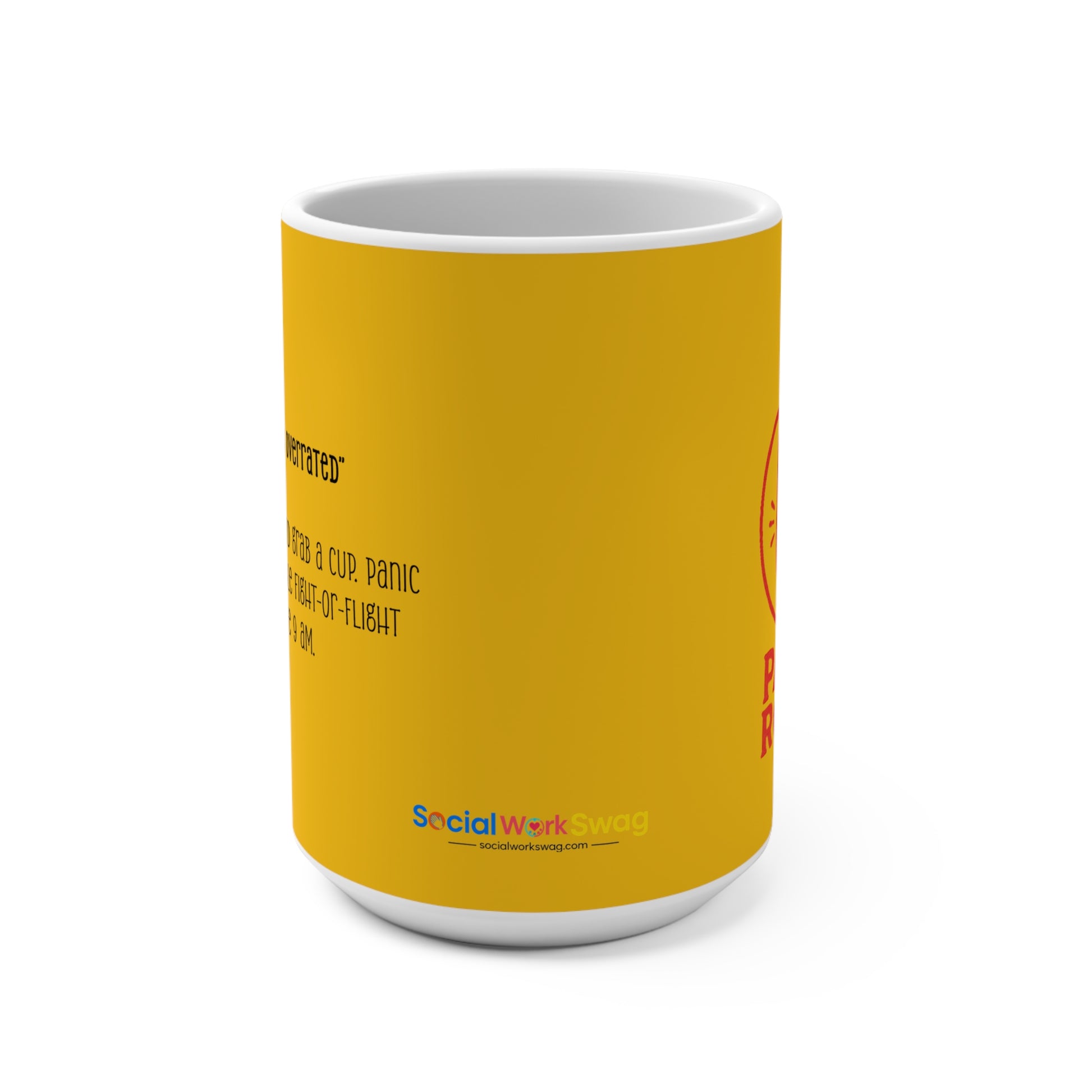 Panic Roast Coffee Mug — Funny Yellow 15oz Ceramic Mug for Social Workers (Matches Coffee!)