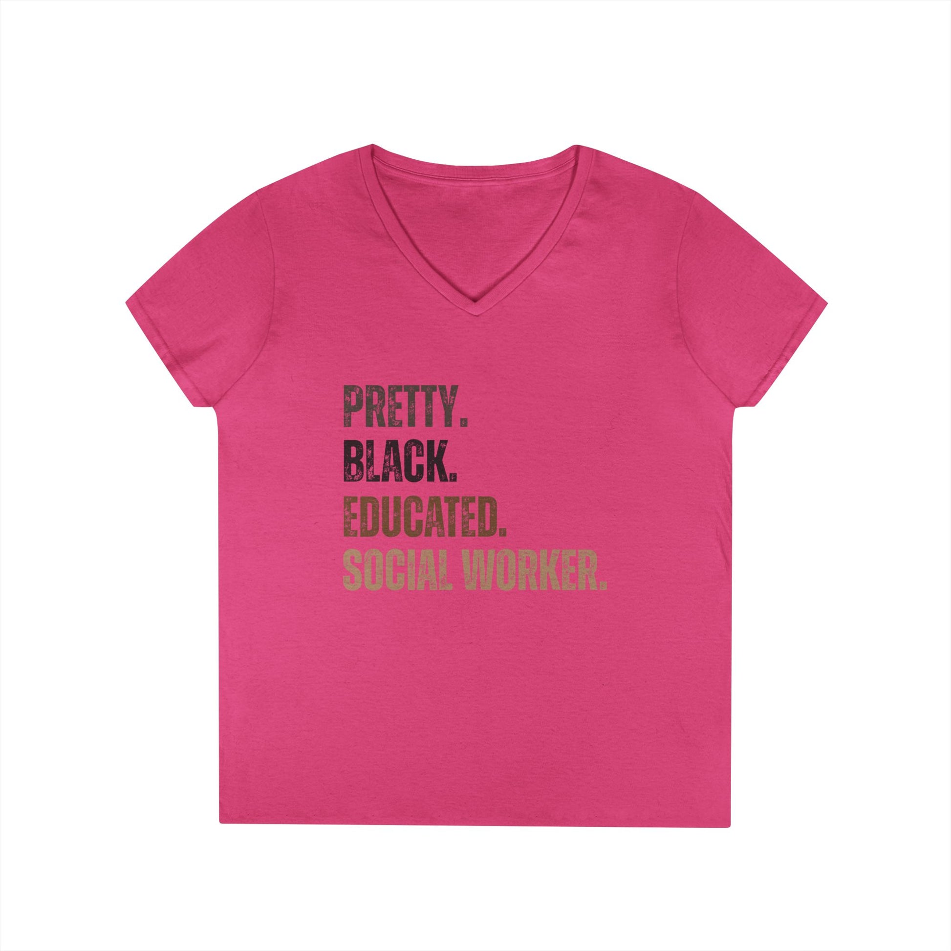 Pretty. Black. Educated. Social Worker. V-Neck Tee