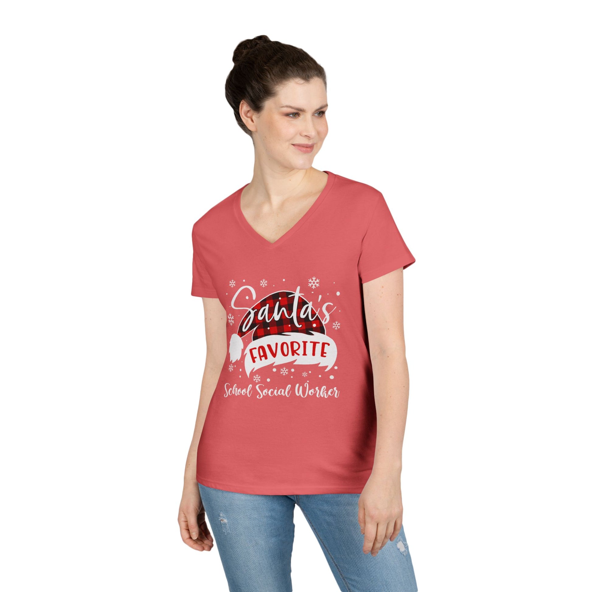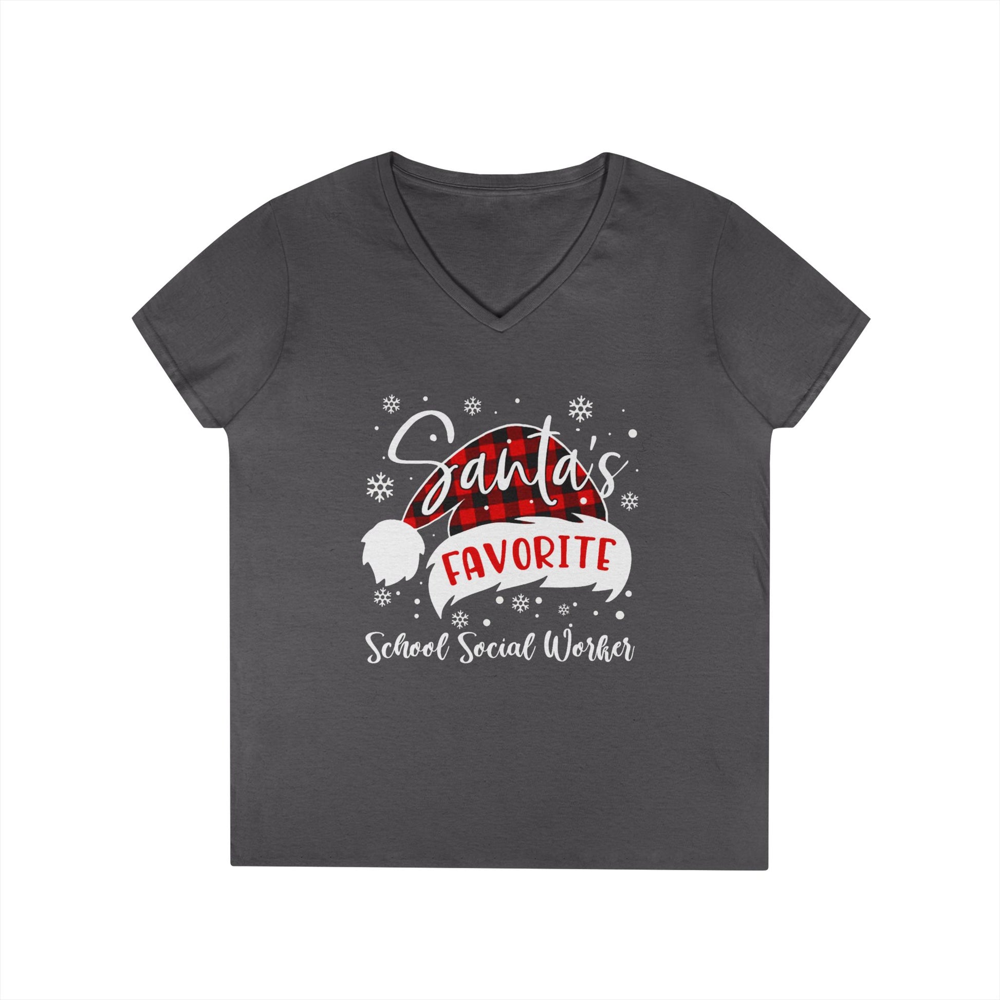 Santa's Favorite School Social Worker V-Neck Tee - Holiday Edition