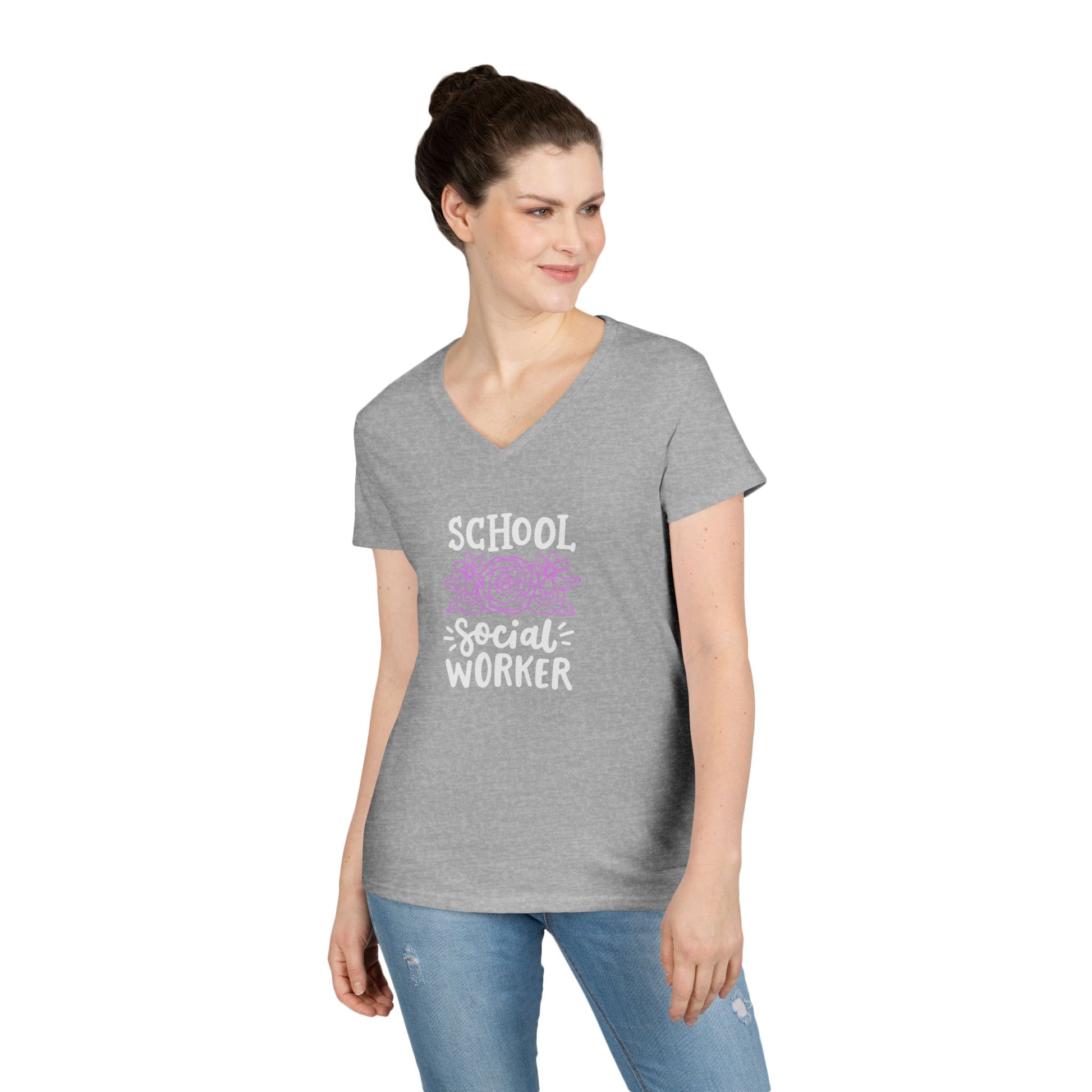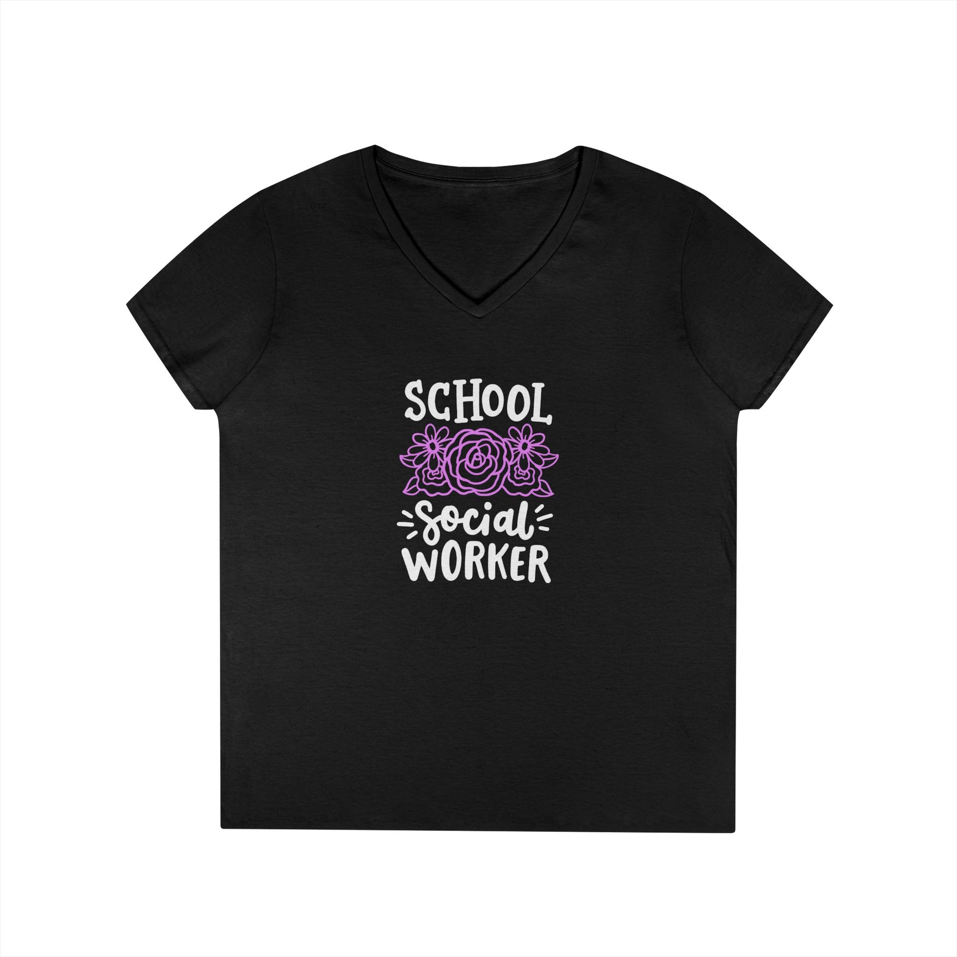 School Social Worker Ladies' V-Neck T-Shirt — Pink Floral Appreciation Gift