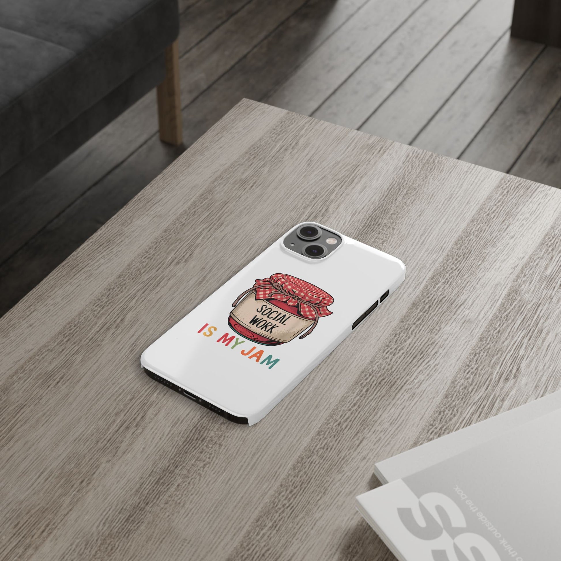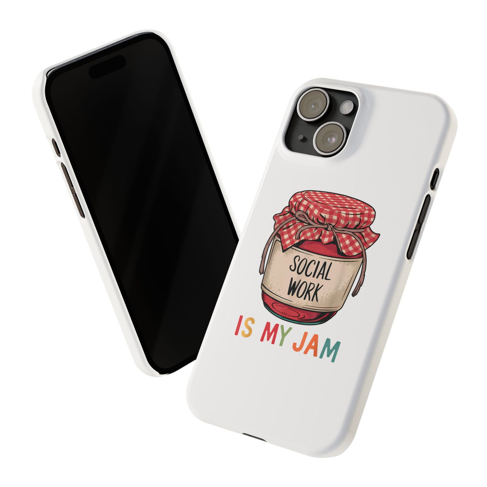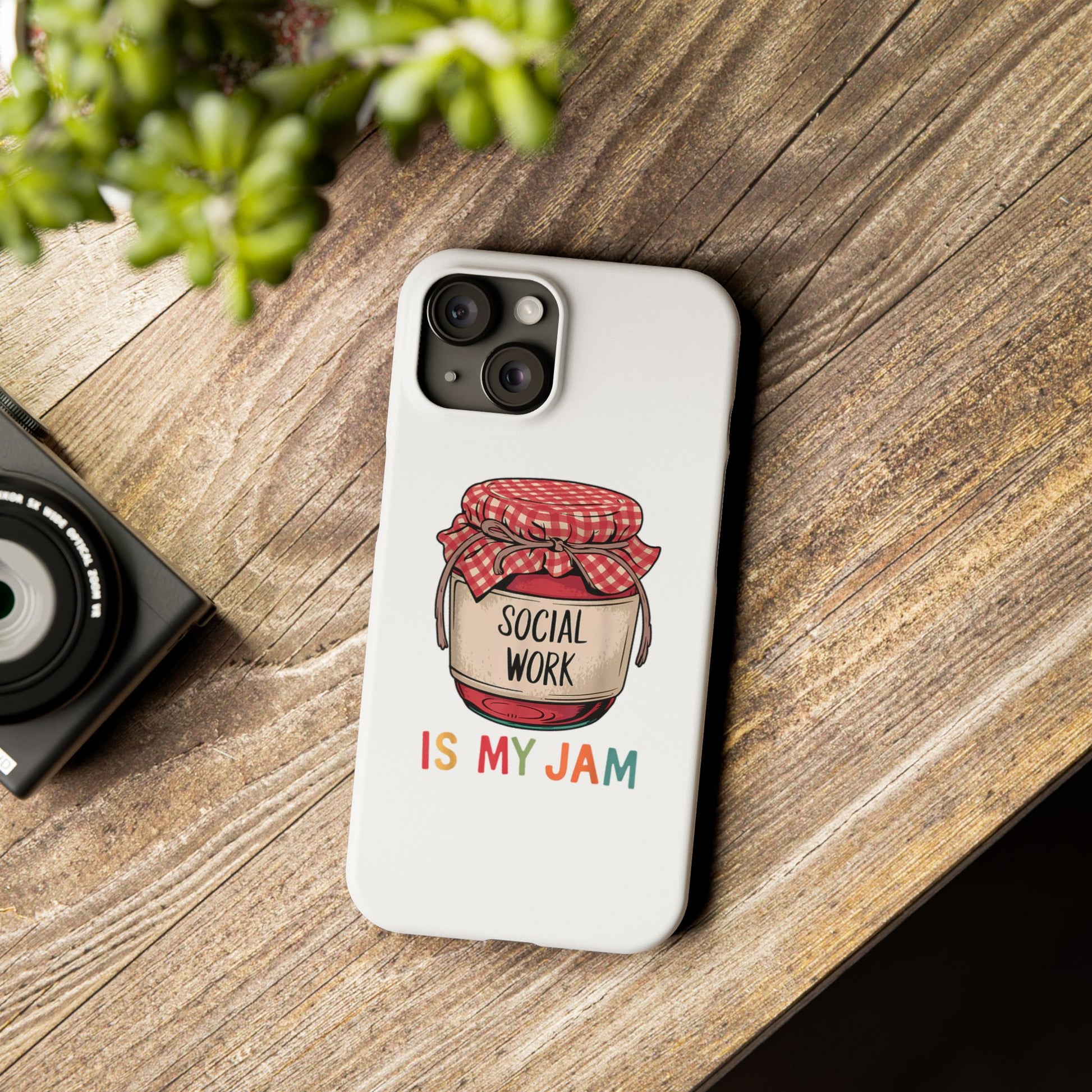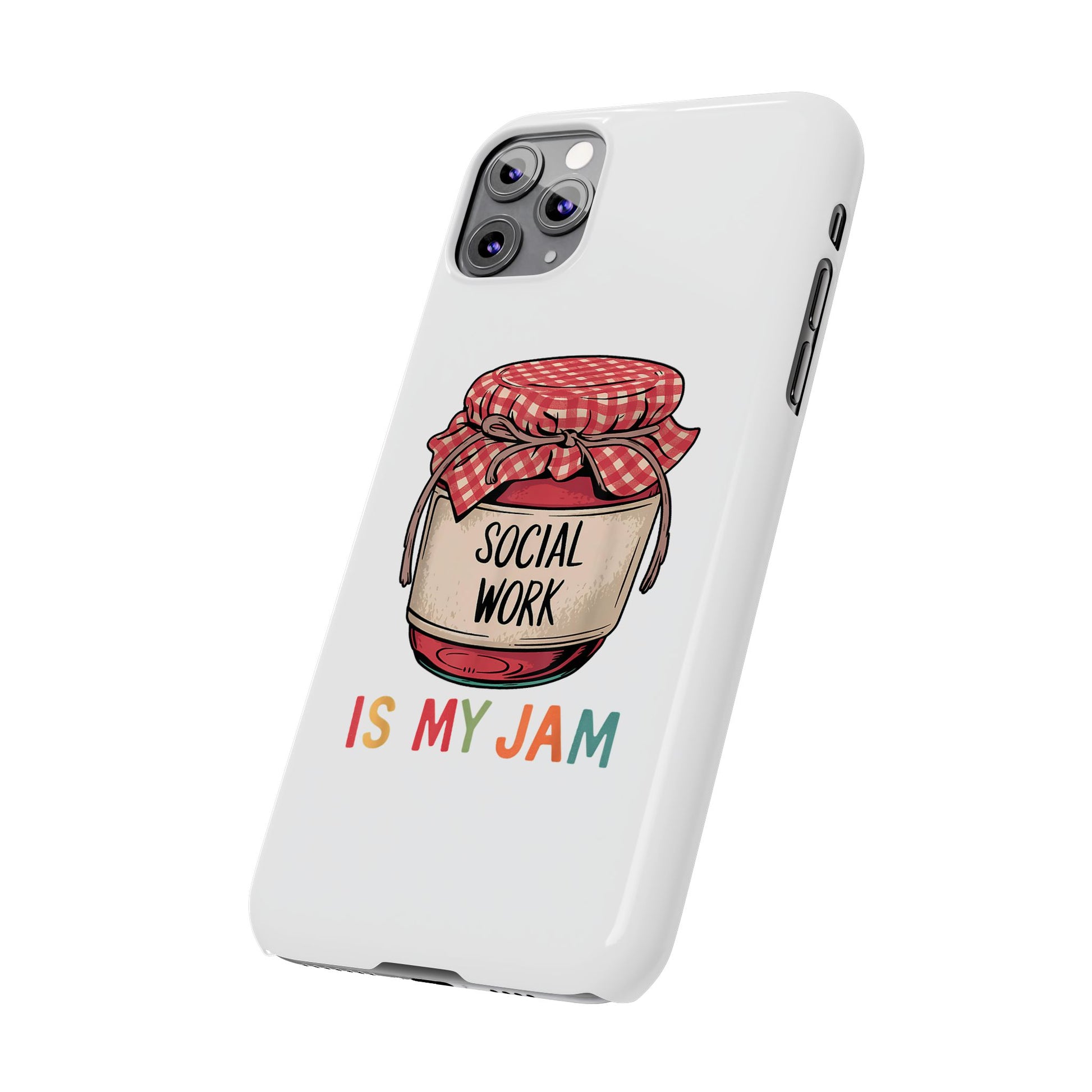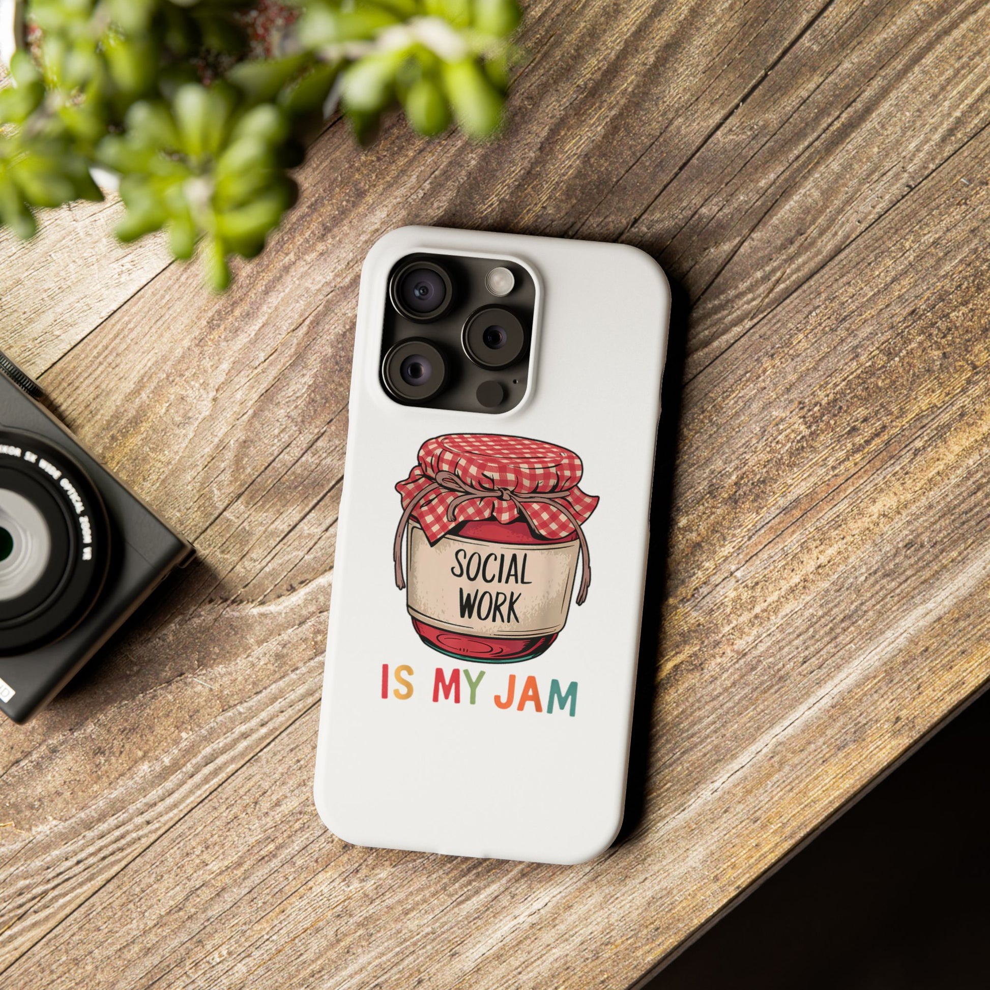 Slim Phone Case — "Social Work Is My Jam" Cute Jar Design for Social Workers