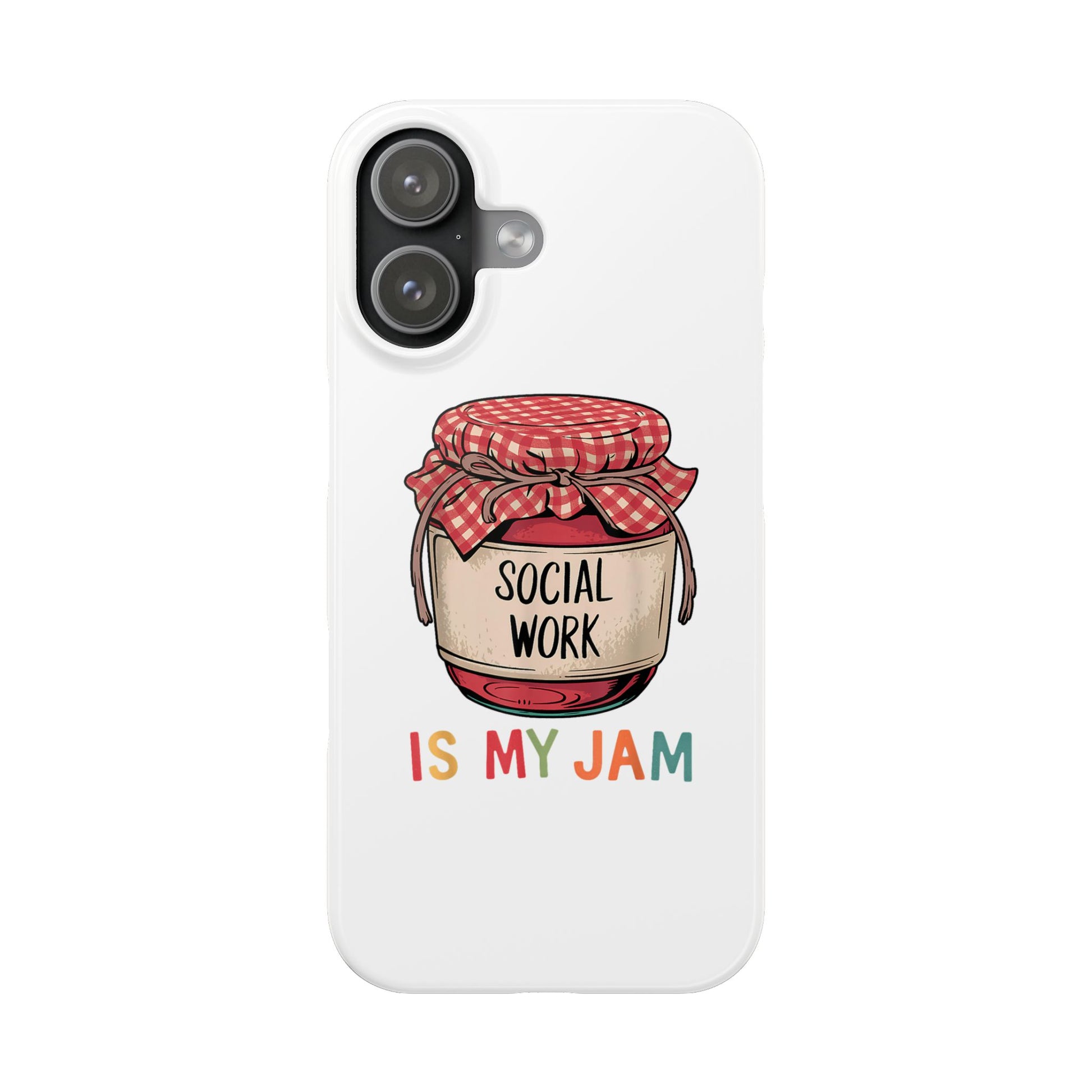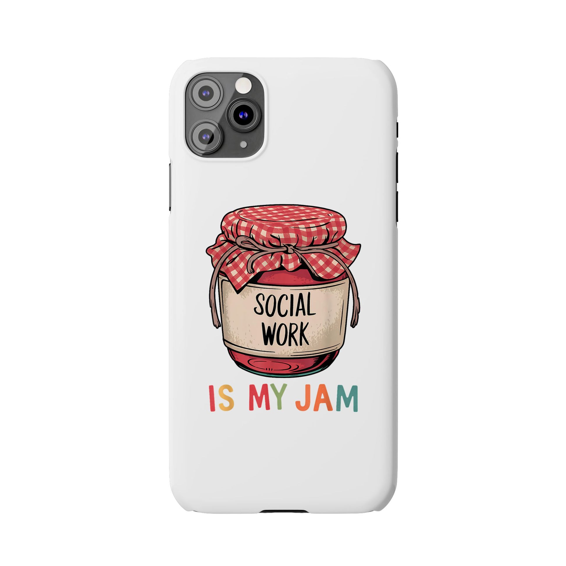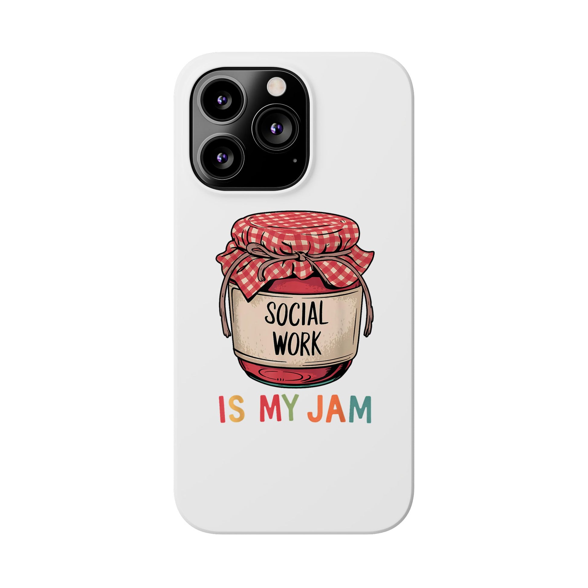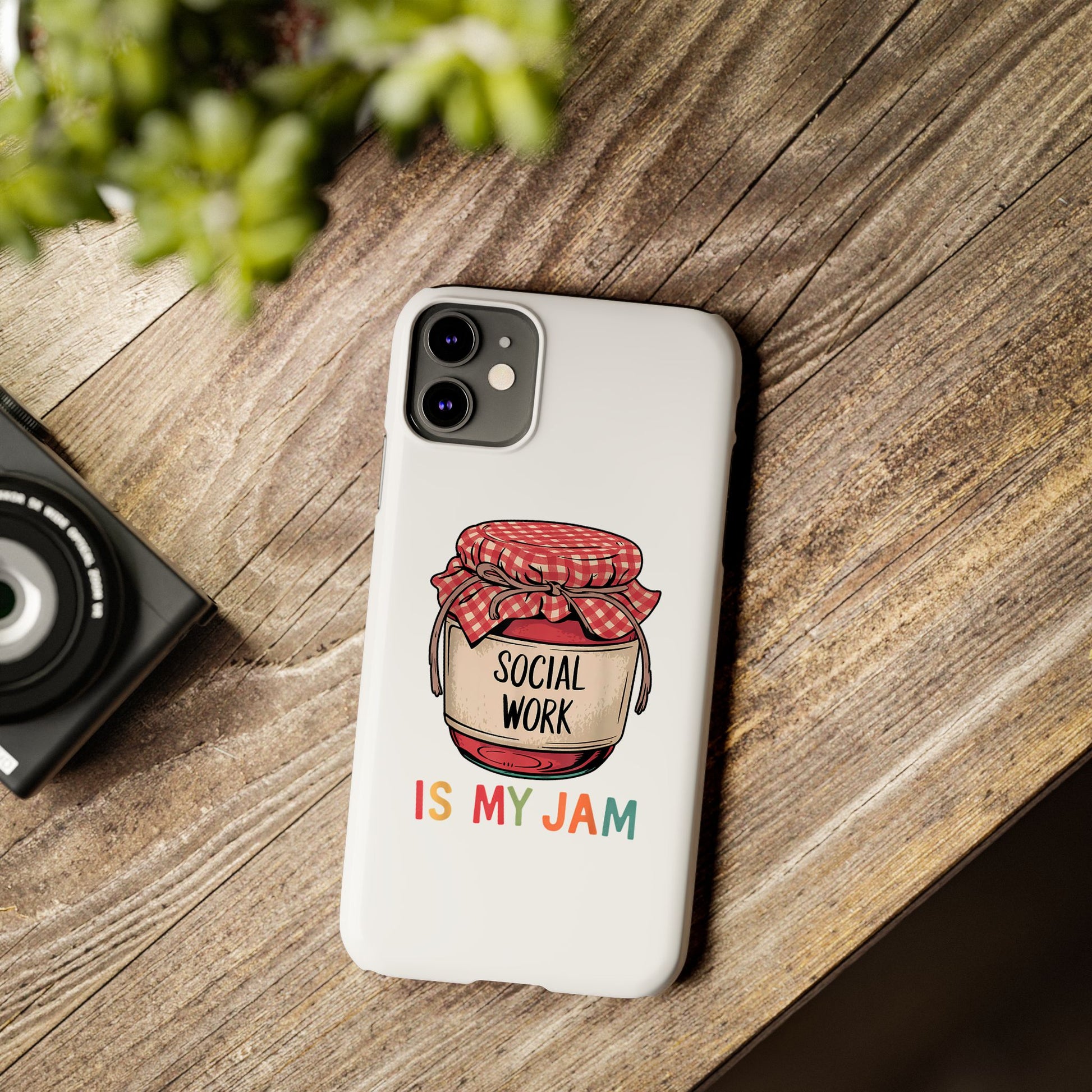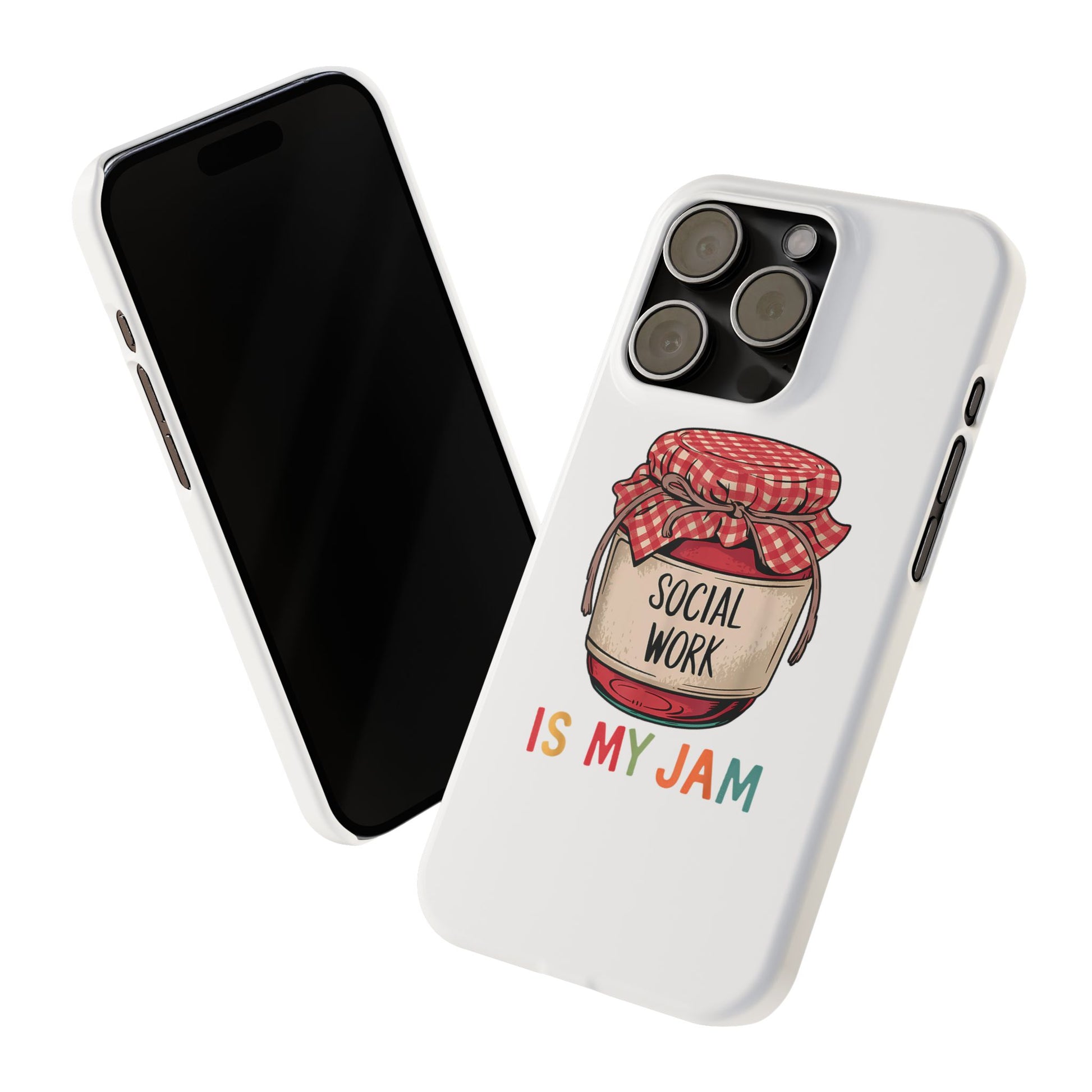 Slim Phone Case — "Social Work Is My Jam" Cute Jar Design for Social Workers