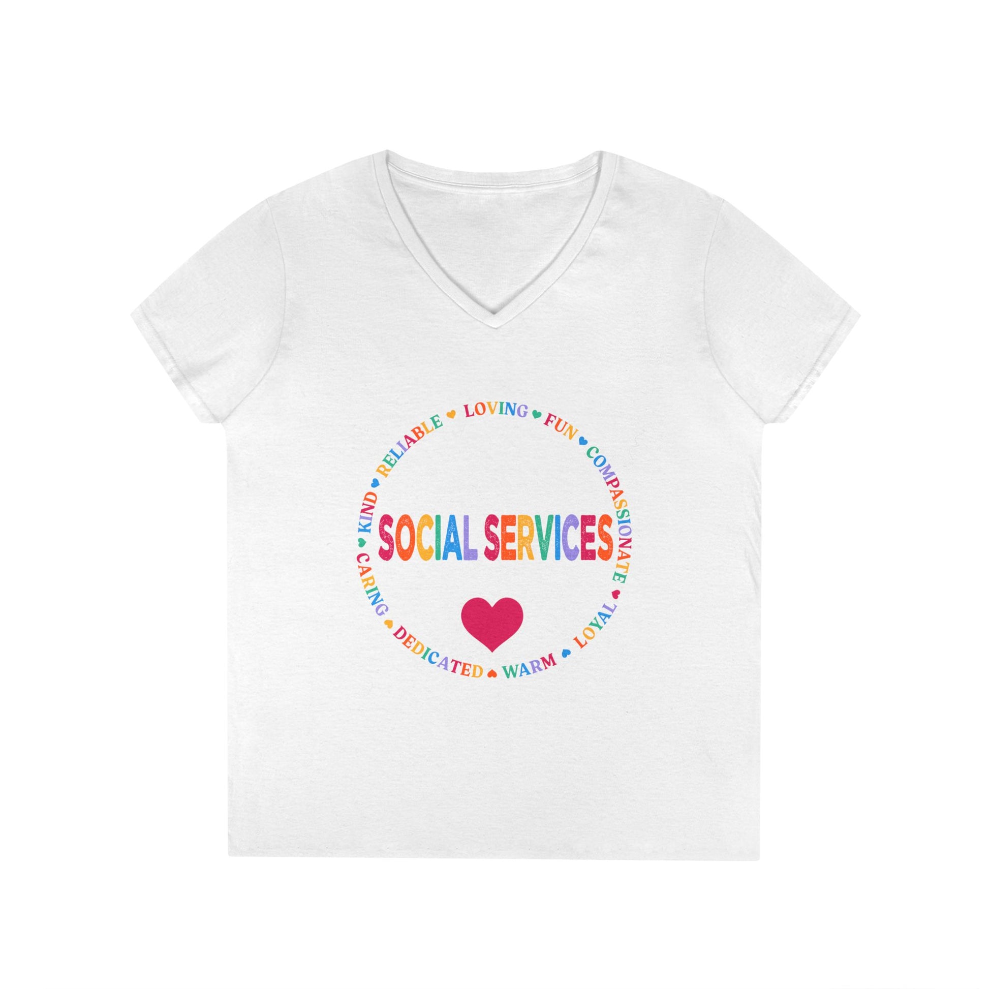 Social Services Rainbow Heart V-Neck Tee — Caring Social Worker Shirt