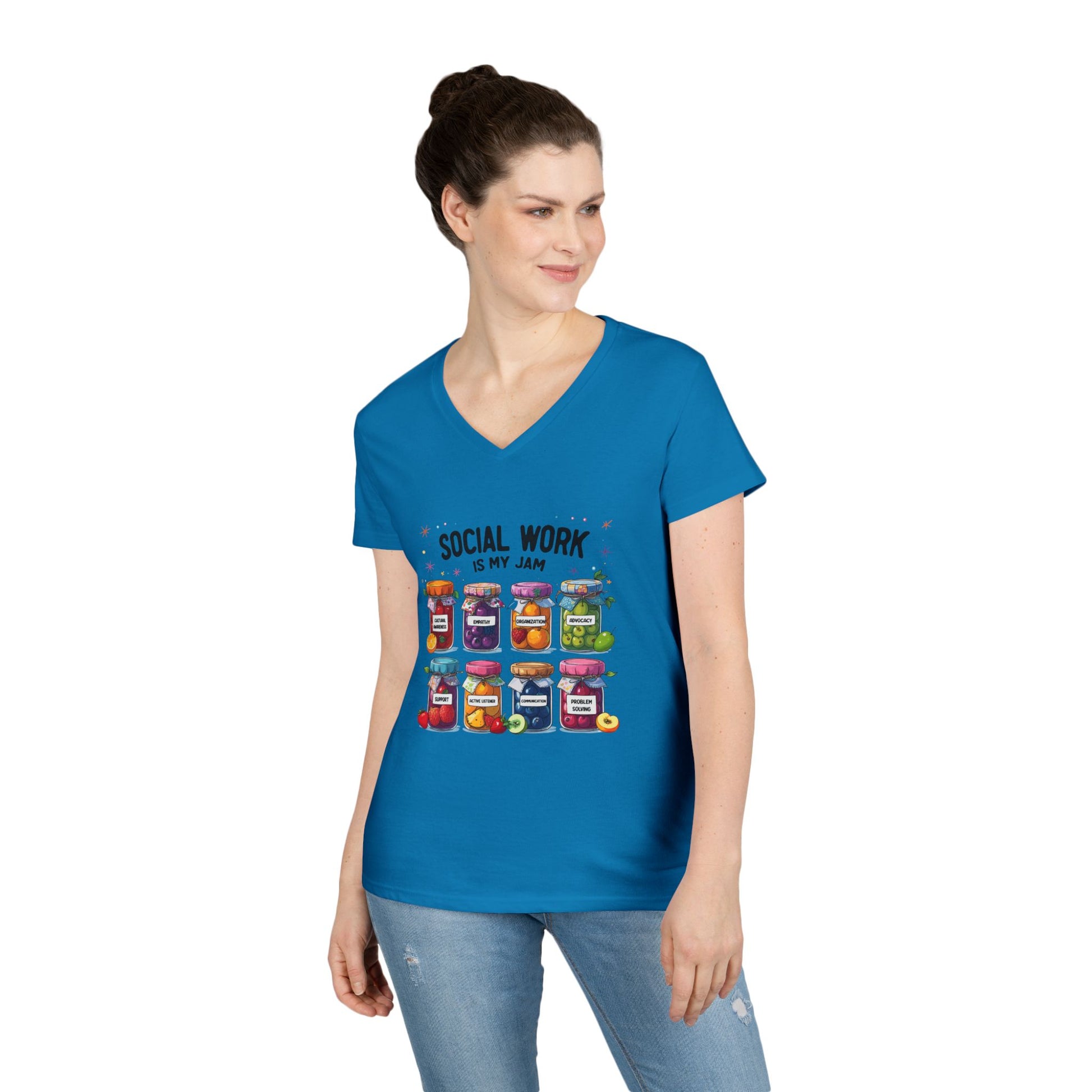 Light, breathable, and handwritten-friendly — this v-neck celebrates social work with a cheerful row of colorful jam jars and the phrase “Social Work is My Jam.” The slim-but-comfortable semi-fitted cut layers easily under sweaters or wears alone on warm days. Rip-free tag and durable double-stitched hems mean it stays soft and wearable after many shifts. Wear it to class, team meetings, or weekend coffee runs; it carries a playful confidence that sparks smiles and starts conversations about care, advocacy, and community.