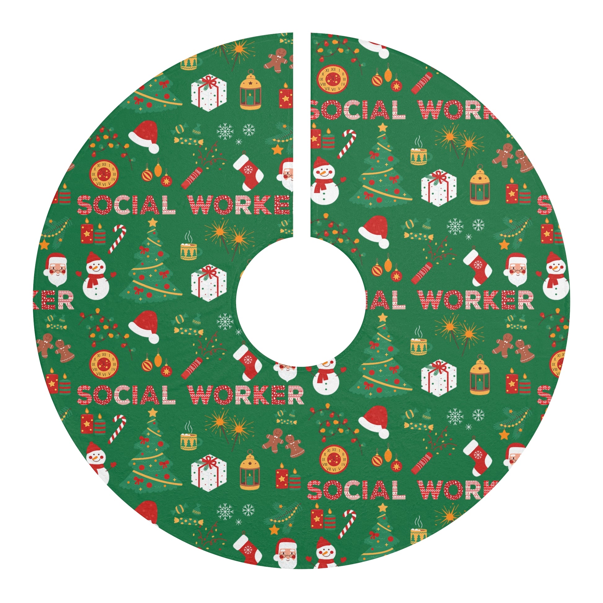 Social Worker Christmas Tree Skirt – Festive Green Holiday Tree Skirt with Santa & Gifts Pattern