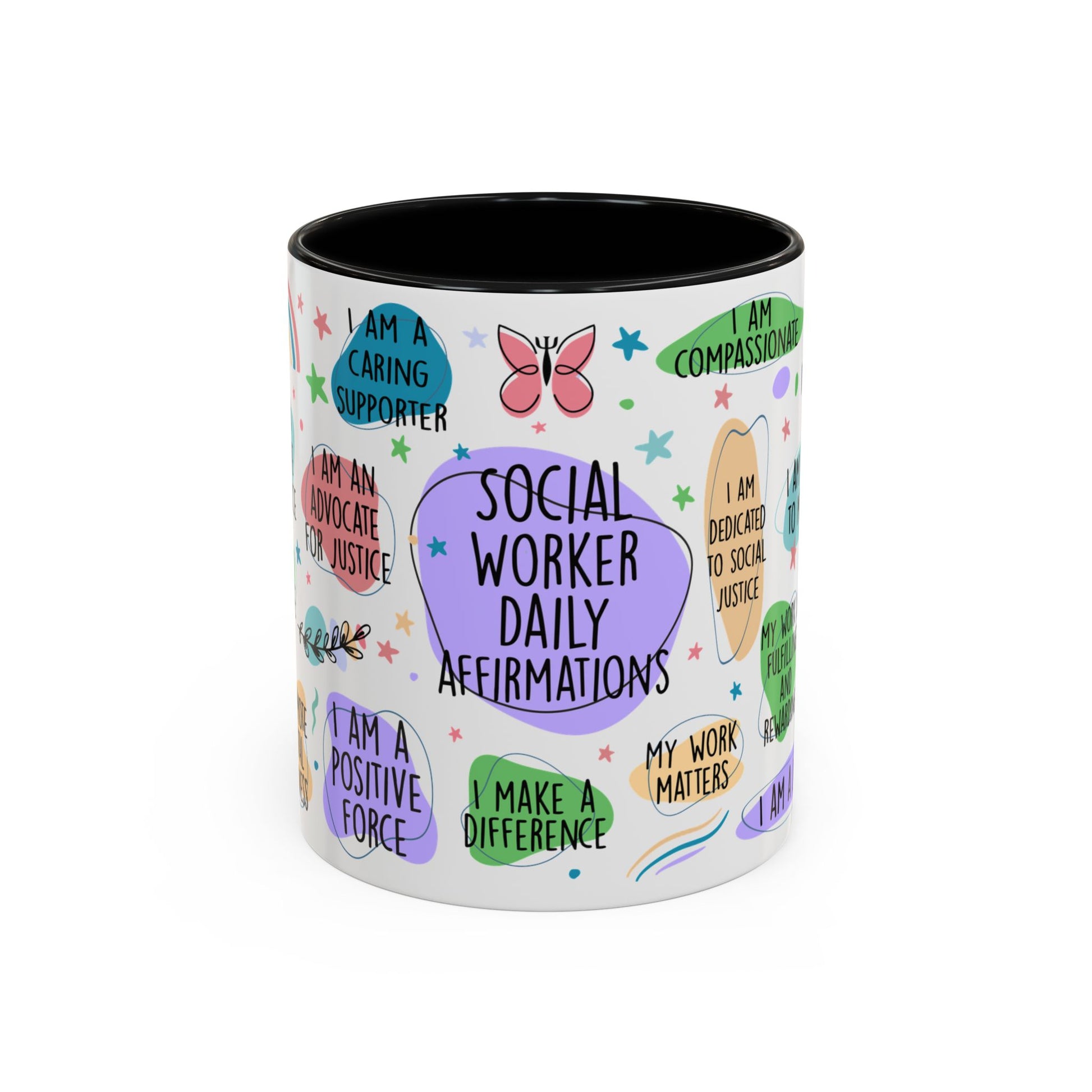 Social Worker Daily Affirmations Accent Coffee Mug — Inspirational -15oz