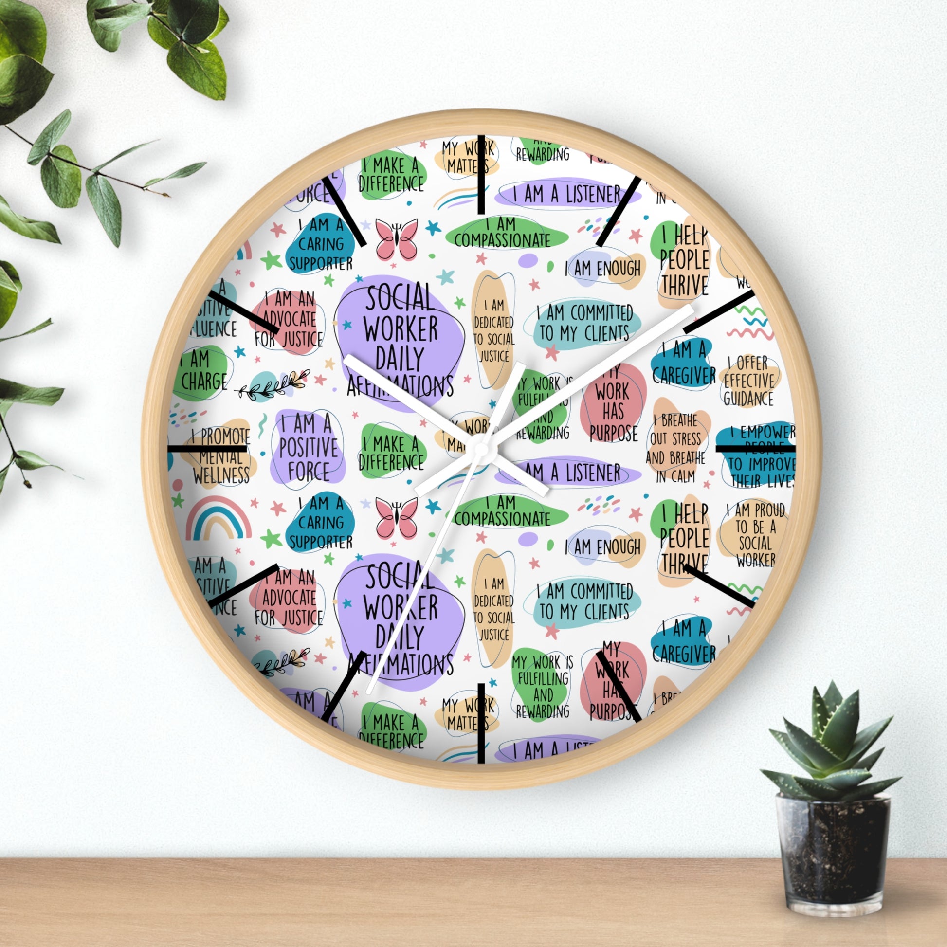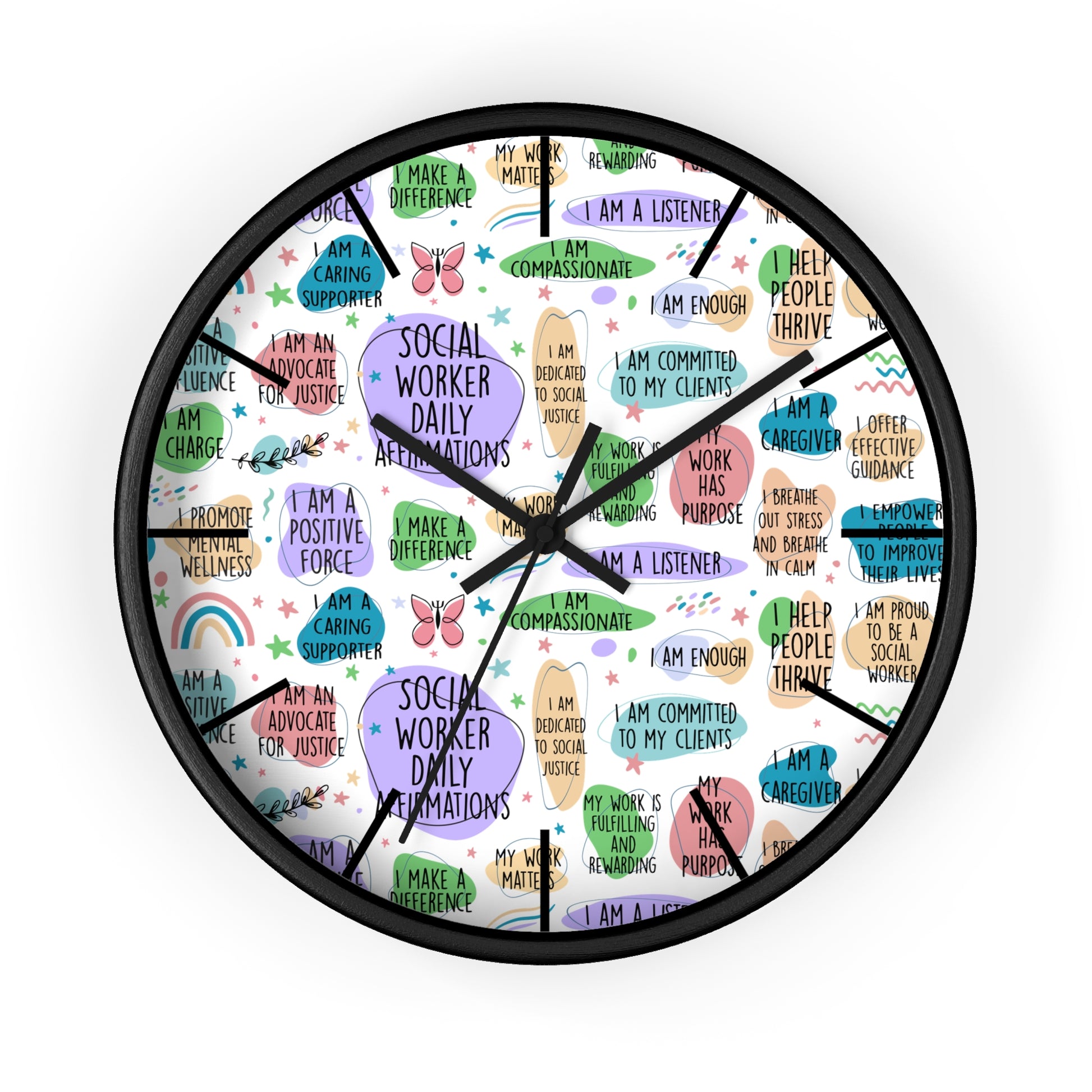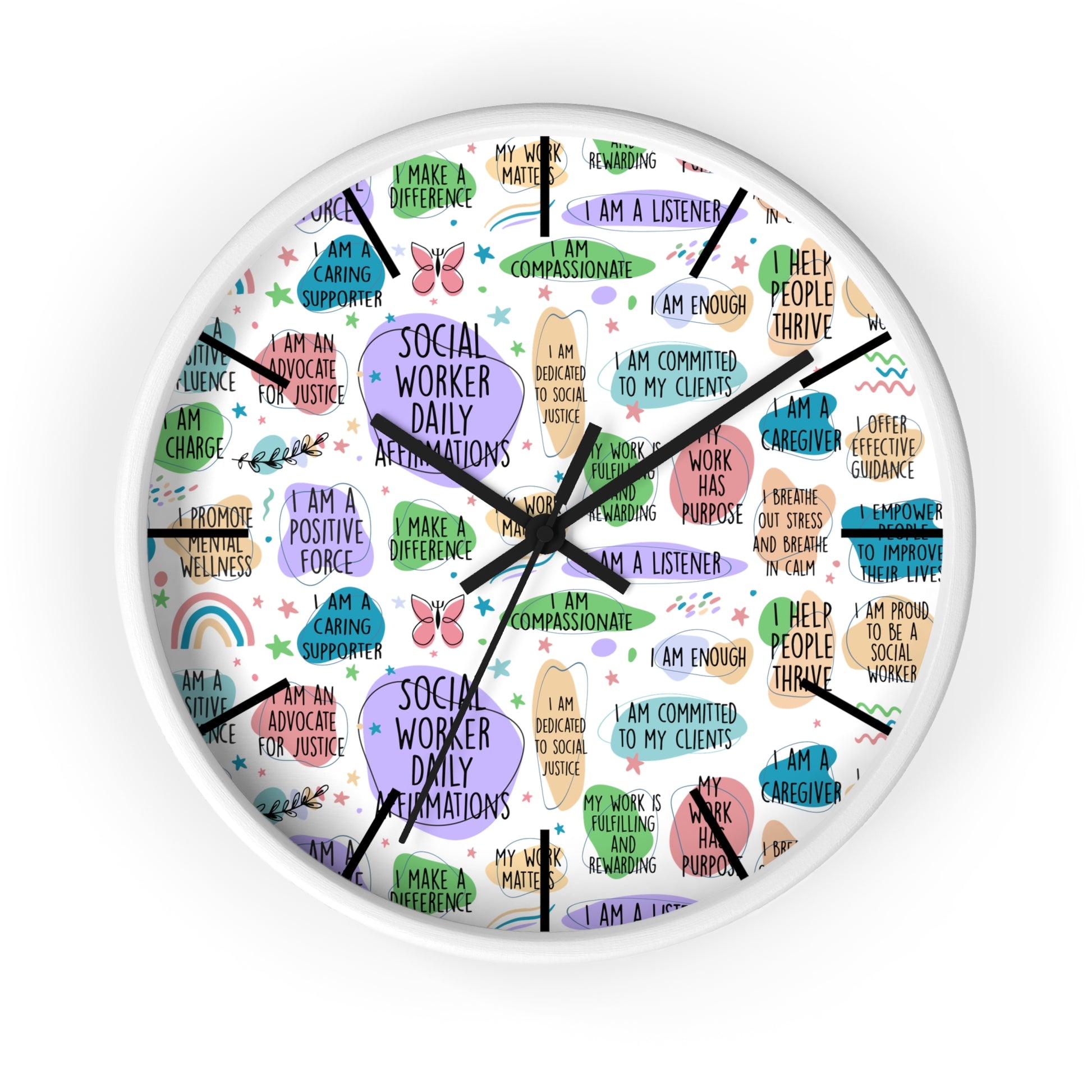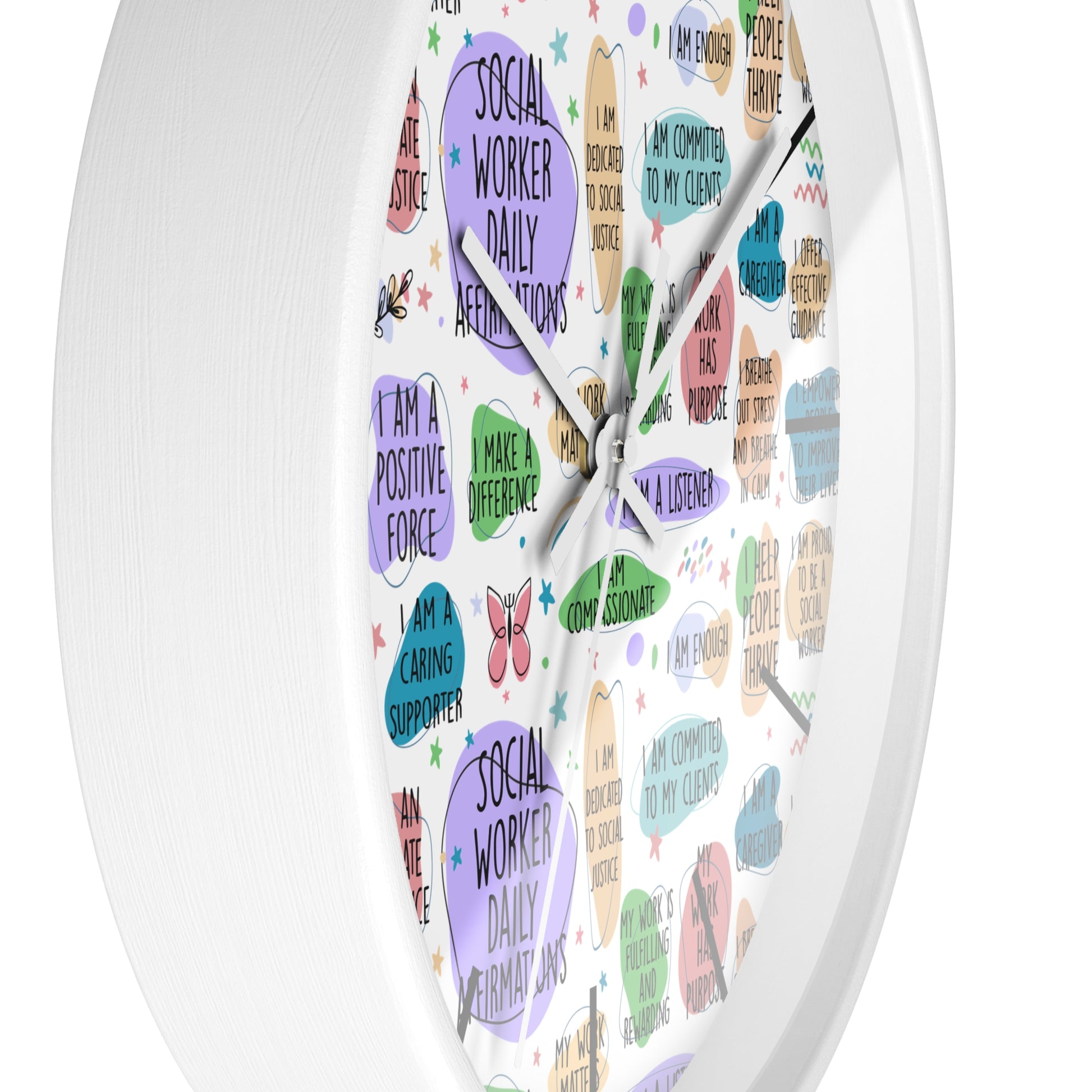 Social Worker Daily Affirmations Wall Clock — Inspirational Office Decor