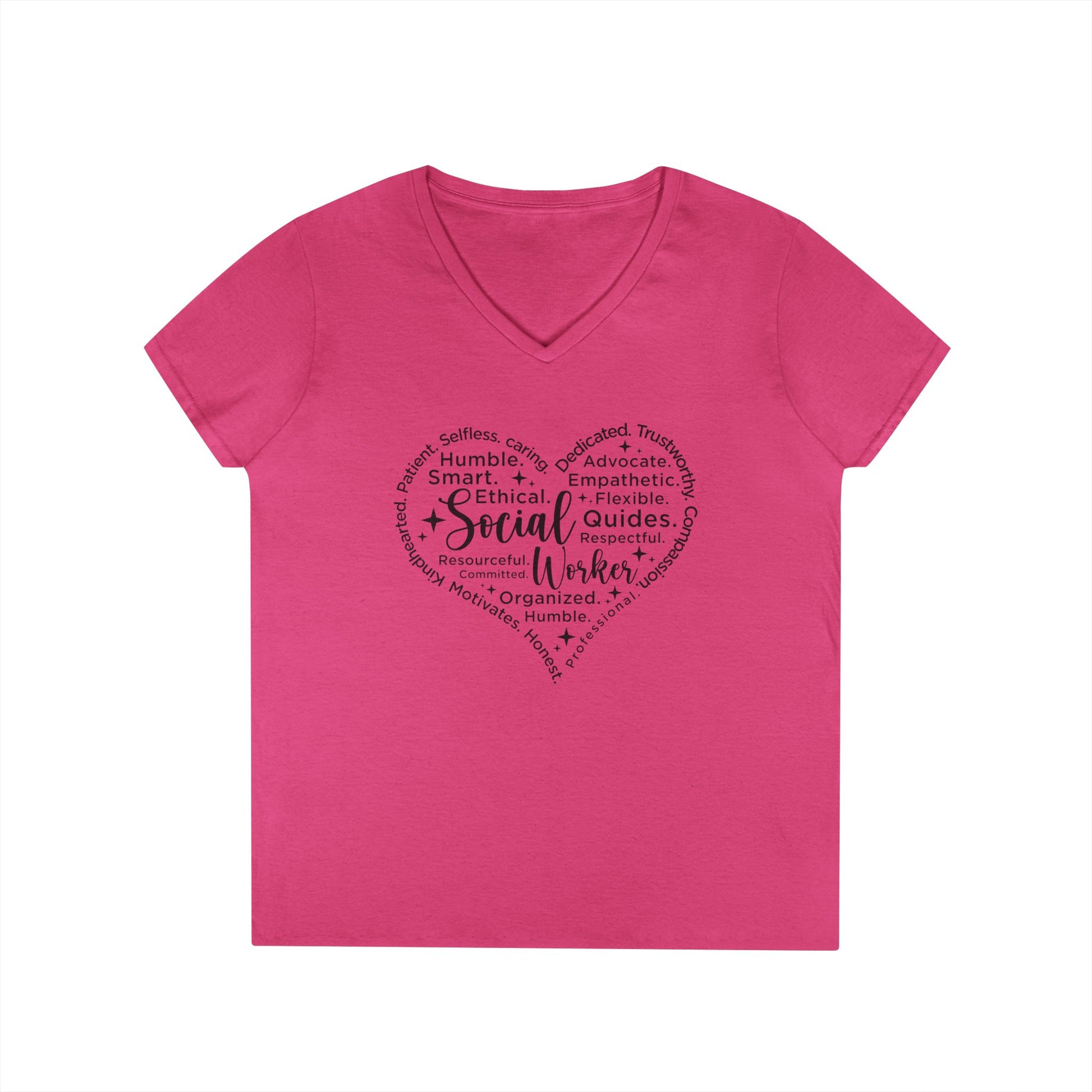 Social Worker Heart V-Neck Tee — Inspirational Word Cloud Shirt for Women