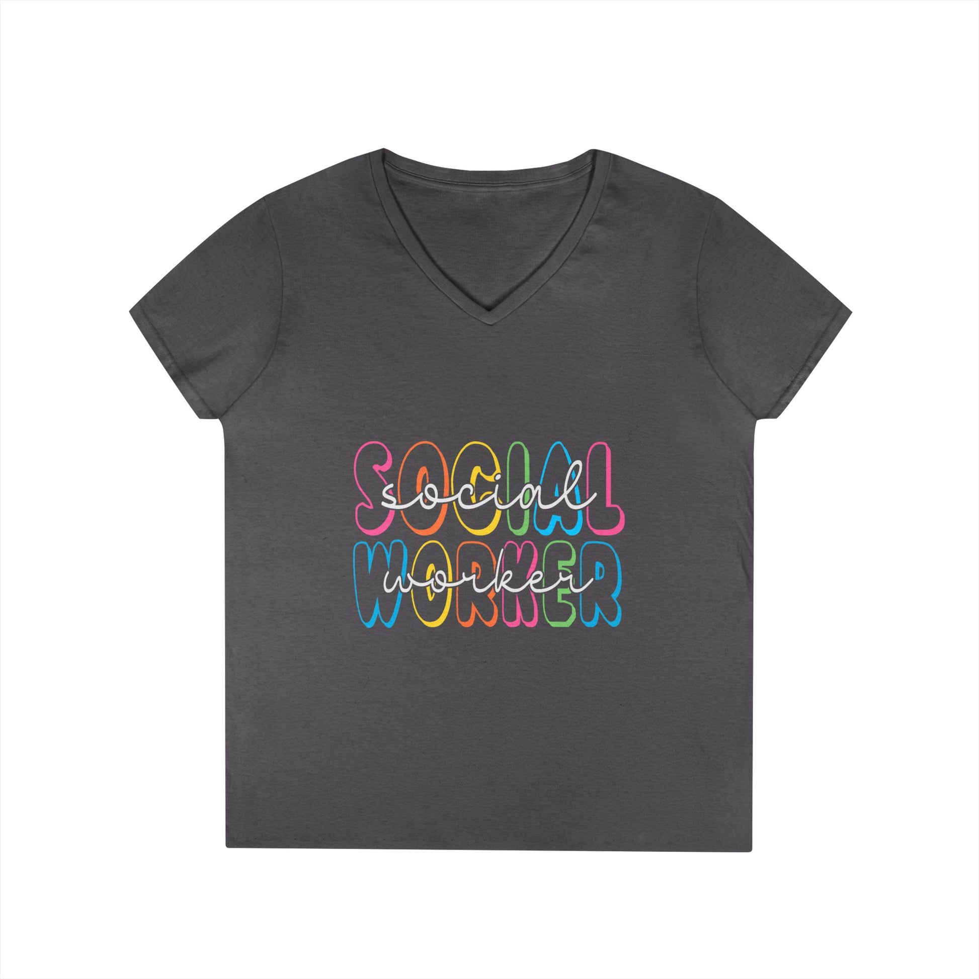Social Worker V-Neck T-Shirt — Colorful Retro Script Women’s Tee