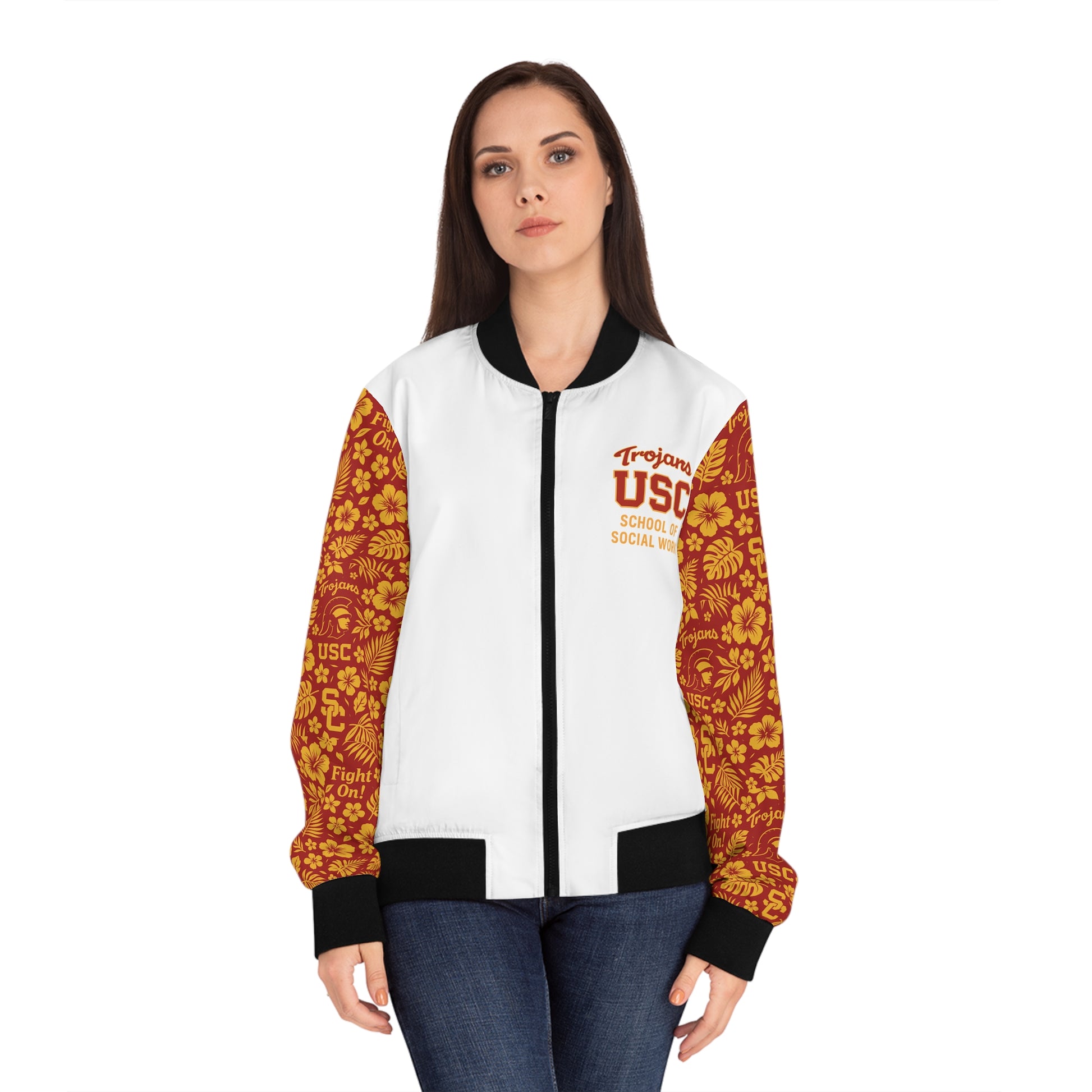 USC School of Social Work - Hawaiian Bomber Jacket (White with Cardinal Red Sleeves)